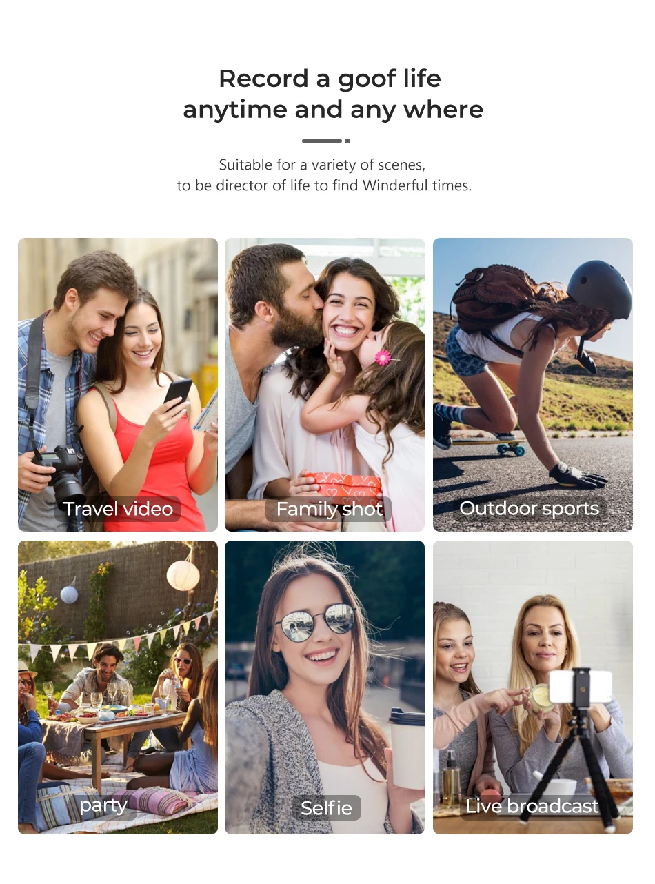 Универсальный: он может идеально работать с мобильными телефонами, чтобы делать стабильные и гладкие фотографии и видео. Поддержка iPhone, Samsung, Galaxy, Huawei и т. Д.