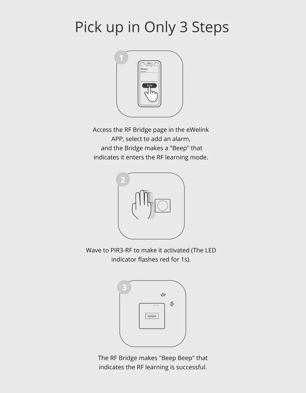 1. Для работы датчика PIR3-RF требуется радиочастотный мост SONOFF 433 МГц.
