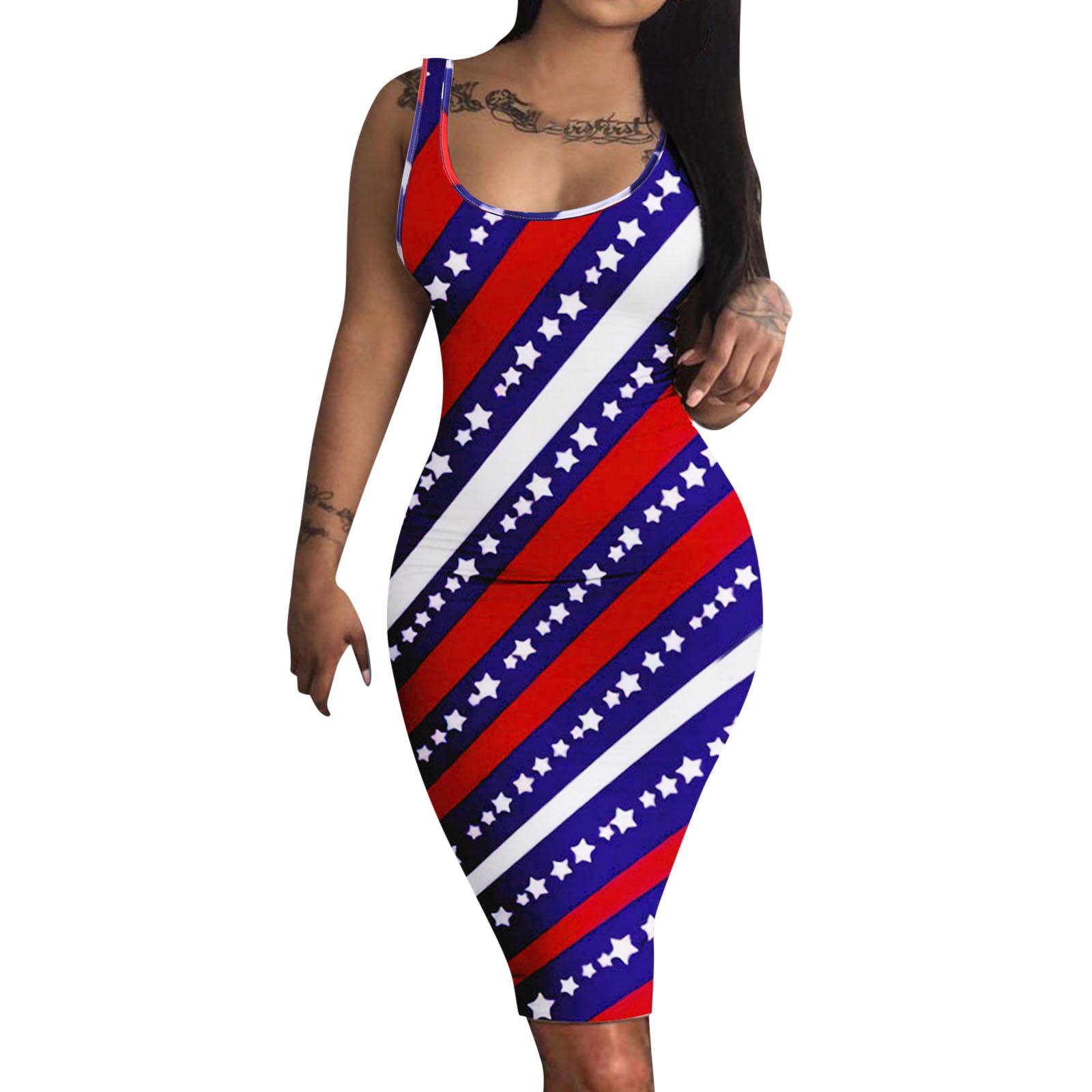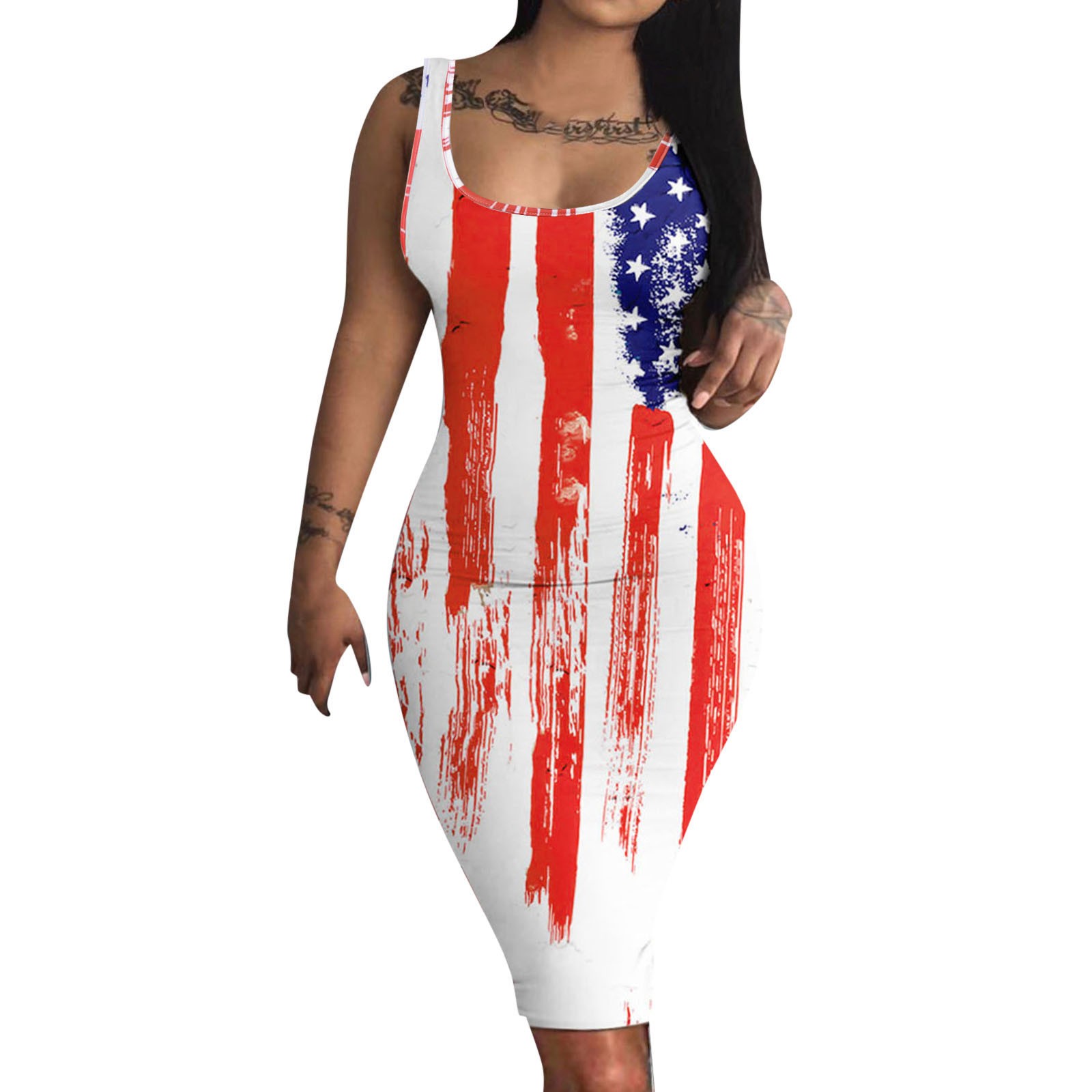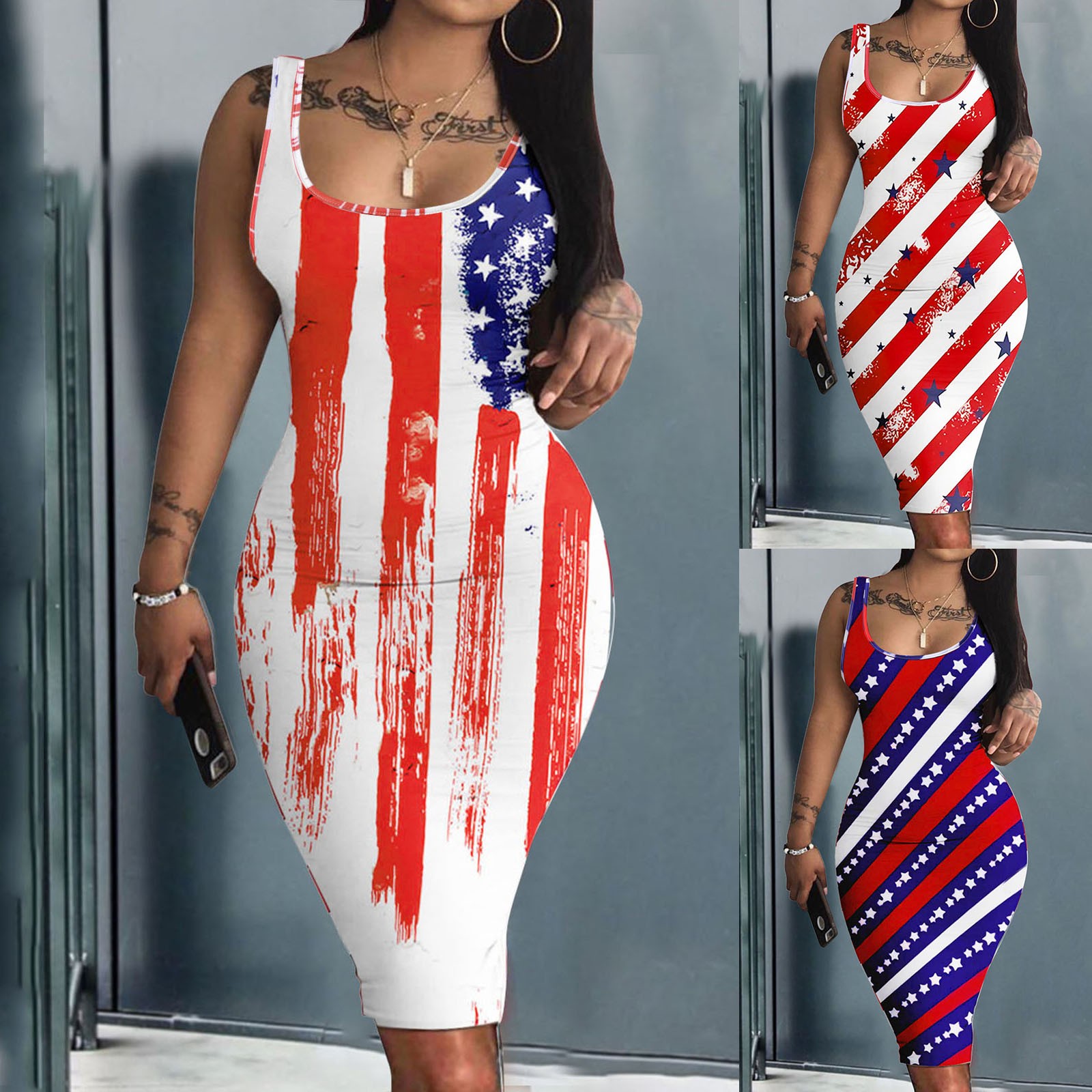 Женское платье без рукавов с принтом американского флага, платье-майка, женское сексуальное мини-платье, клубная одежда