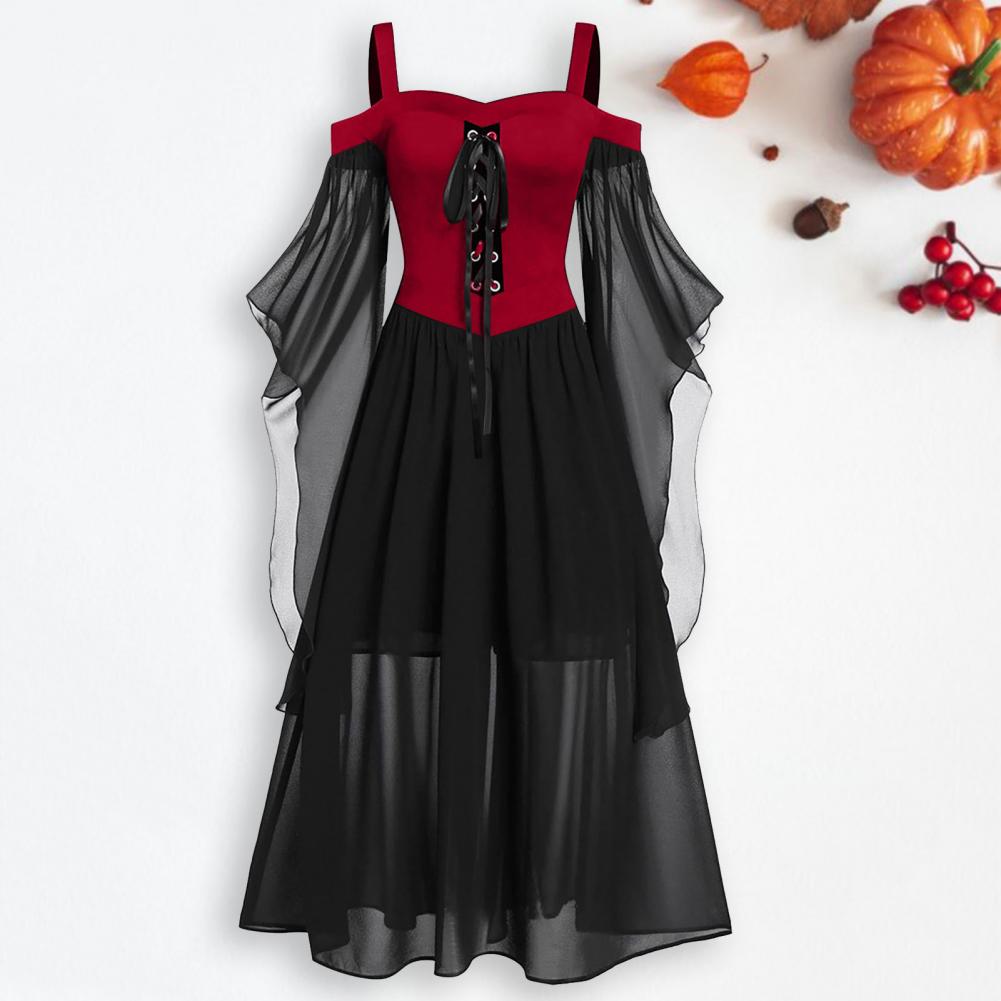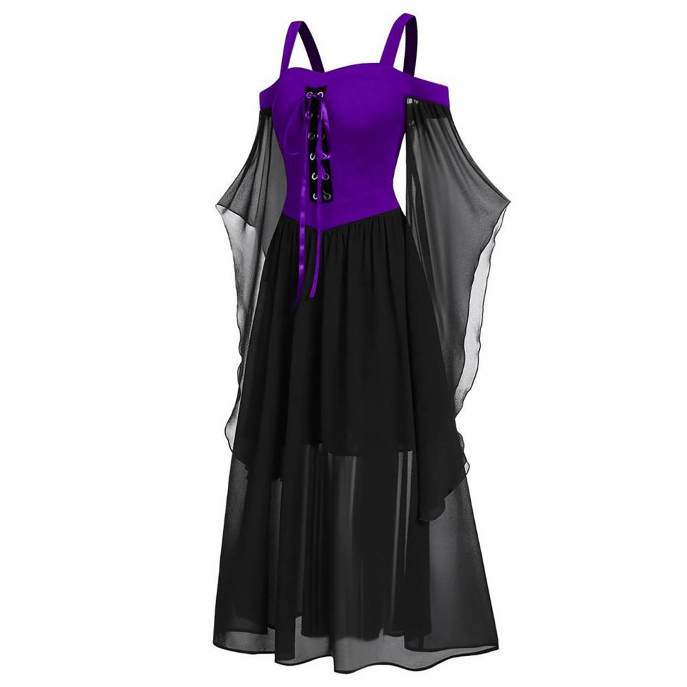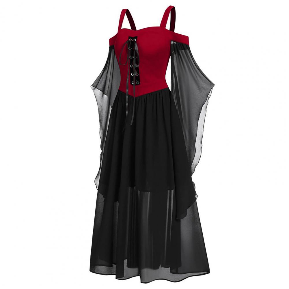 Средневековое платье, Сетчатое трикотажное платье с рукавами спереди, перекрестное Бандажное Сетчатое прозрачное шифоновое платье трапециевидной формы, облегающее готическое панк-платье на бретелях с открытыми плечами, платье ведьмы на Хэллоуин для банкета