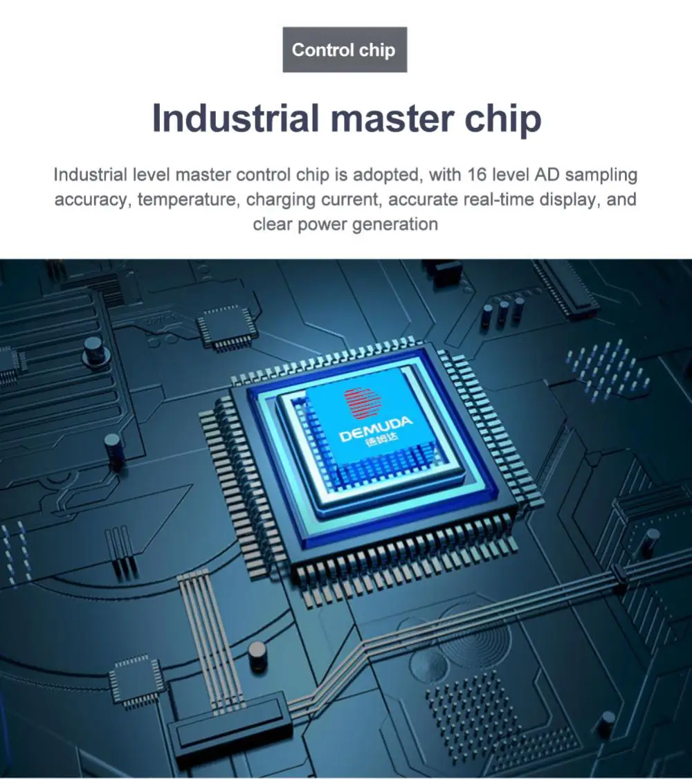 2. Промышленного класса основной чип управления: с помощью промышленного класса основной чип управления, 16-уровень AD Точность выборки, температура, зарядный ток никель-металл, точный дисплей в режиме реального времени, производство электроэнергии, который обеспечивает широкий угол обзора
