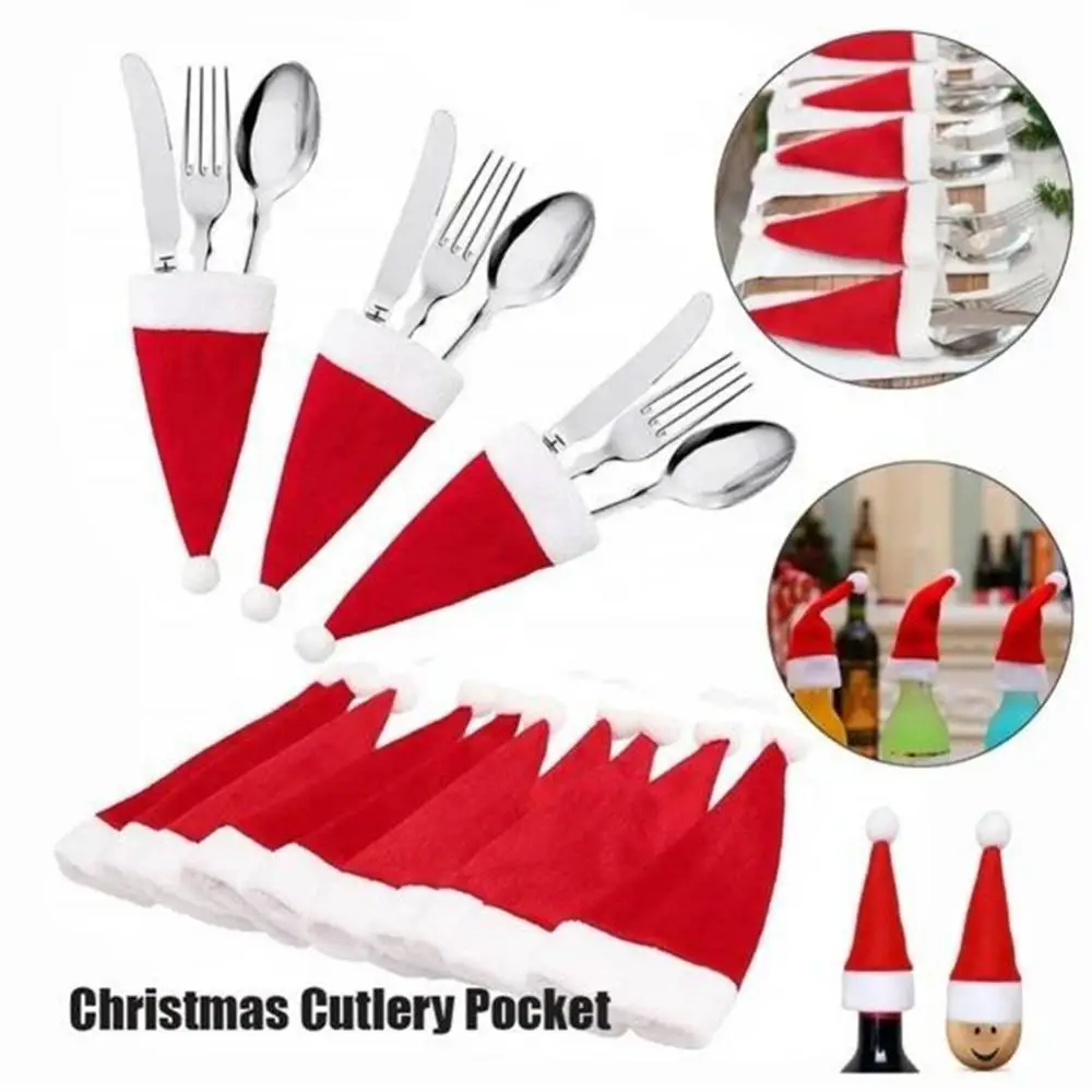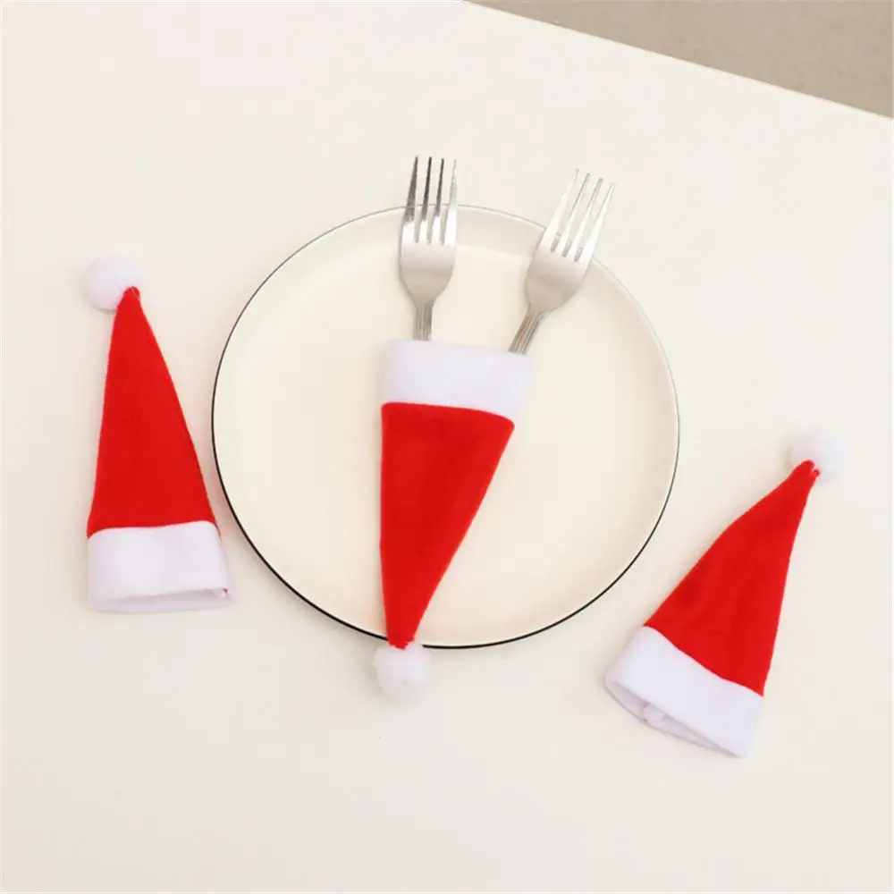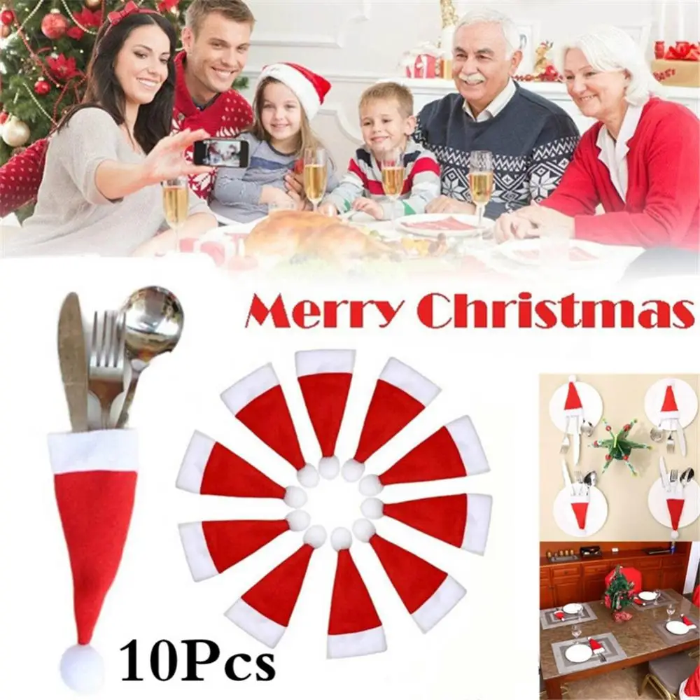 1/10 шт посуда держатель мешка, Рождественская шапка, Рождественский 2022 Рождество аксессуары украшения дома кухня посуда держатель