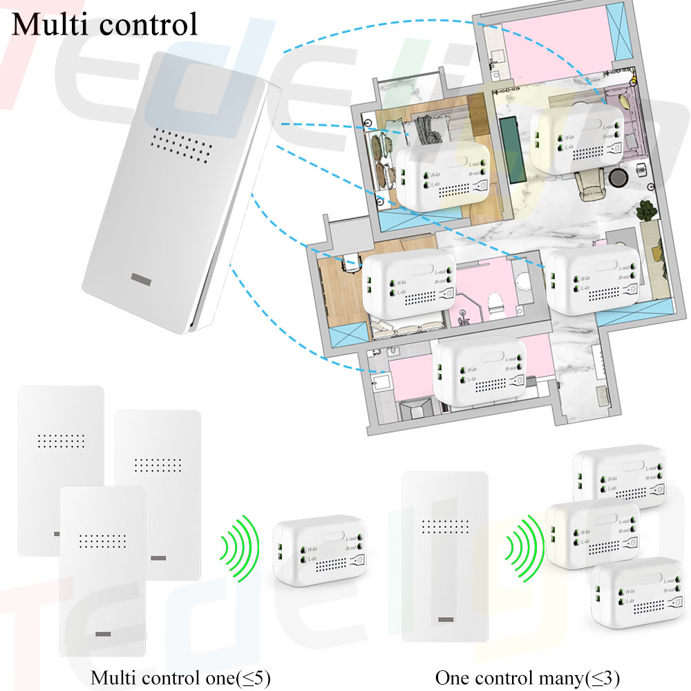 3. Мульти управление: один приемник может управляться 5 шт Настенные переключатели. Один настенный выключатель может управлять приемниками 3 шт. одновременно;