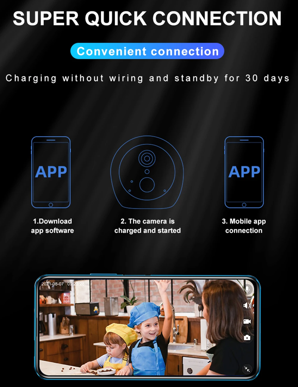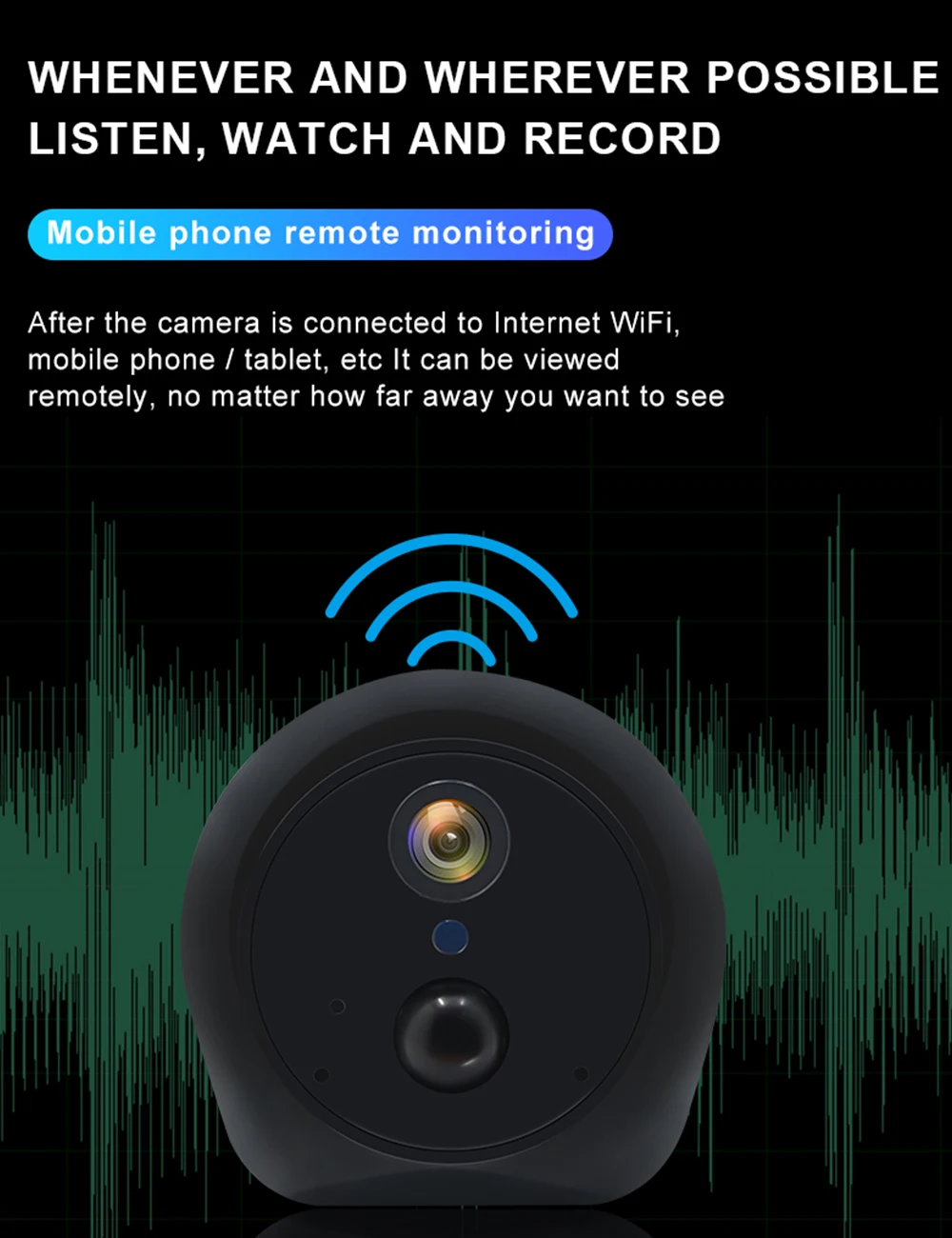 1080P Wifi Battery Powered Security Camera is a Wireless Indoor Outdoor Camera,Connecting to the Internet via 2.4GHz Wifi signal, Just install "Smart Life" or " Tuya Smart" App on your phone and you can remotely it anywhere.