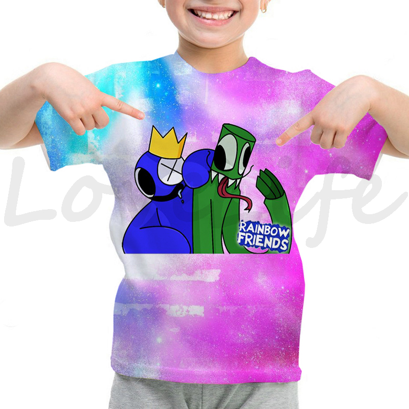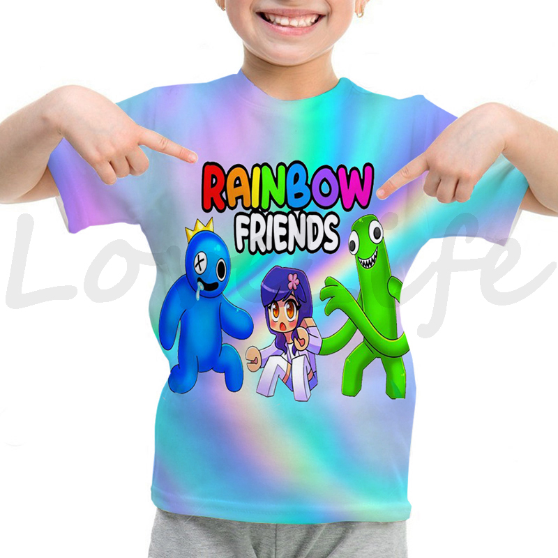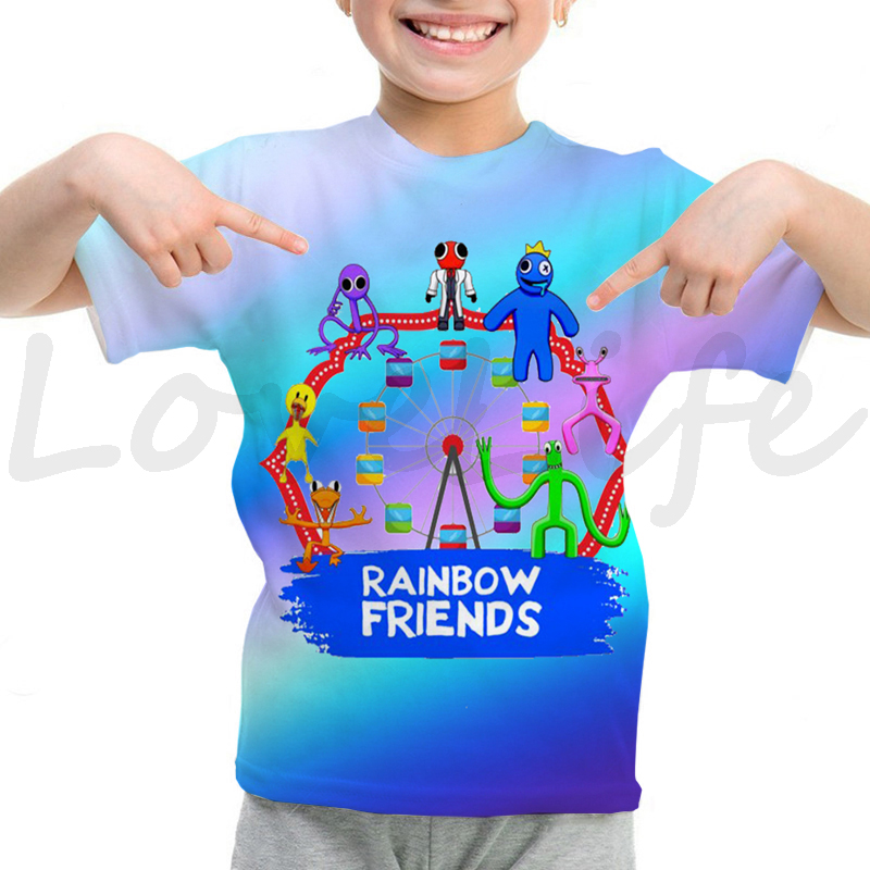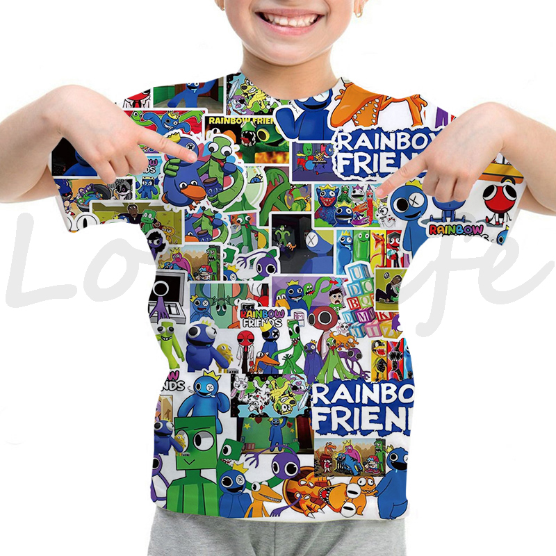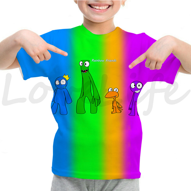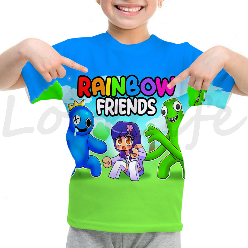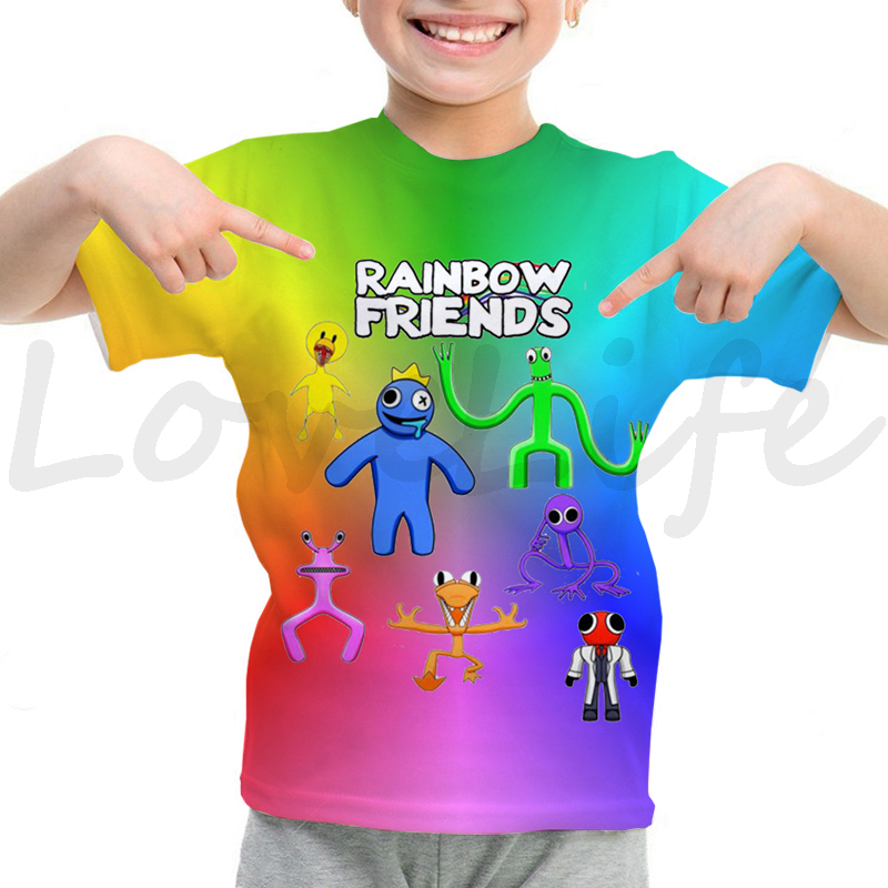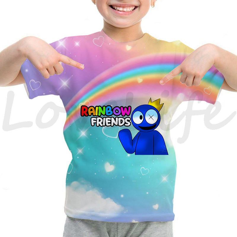 Детская футболка с радужными друзьями для девочек и мальчиков летняя футболка с короткими рукавами и объемным рисунком футболки с рисунками из мультфильмов, футболки с аниме рисунком, Camiseta