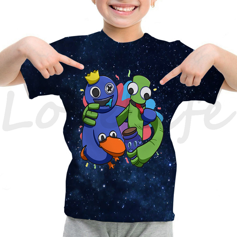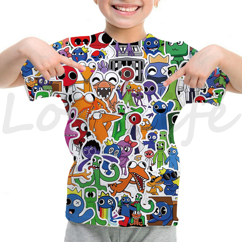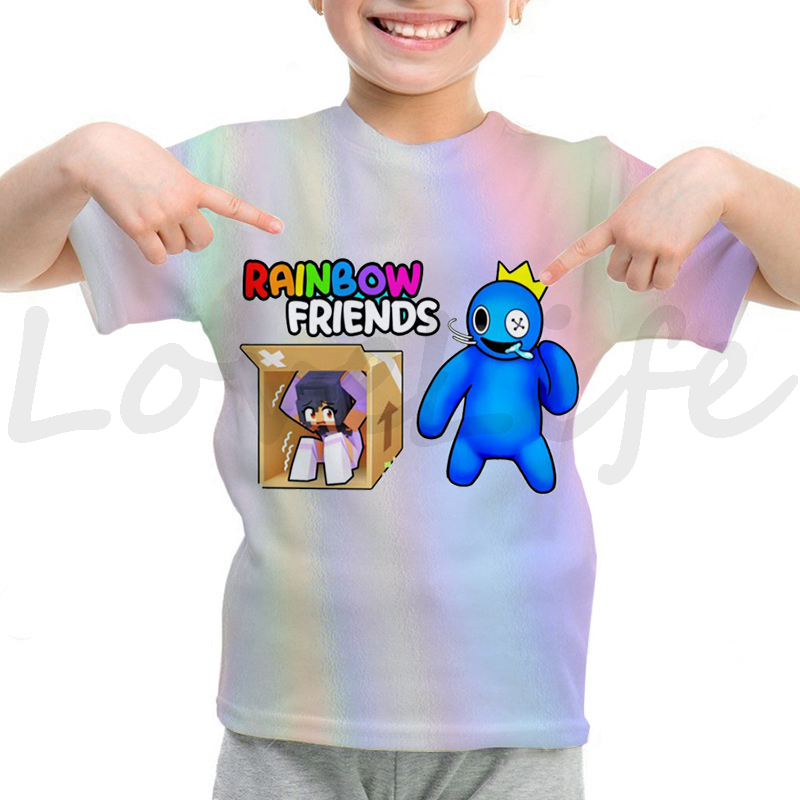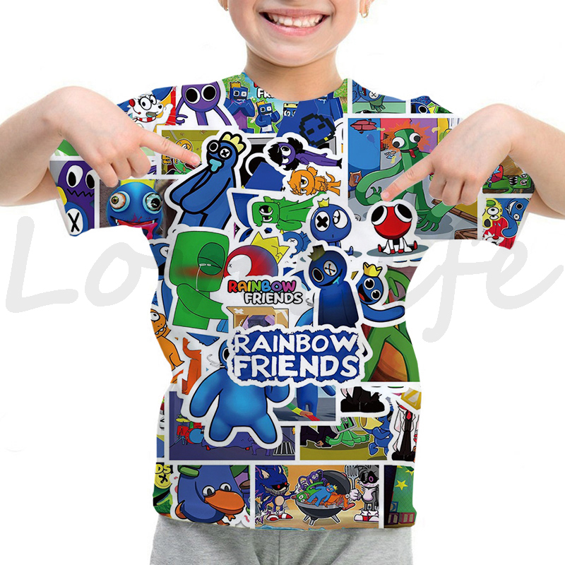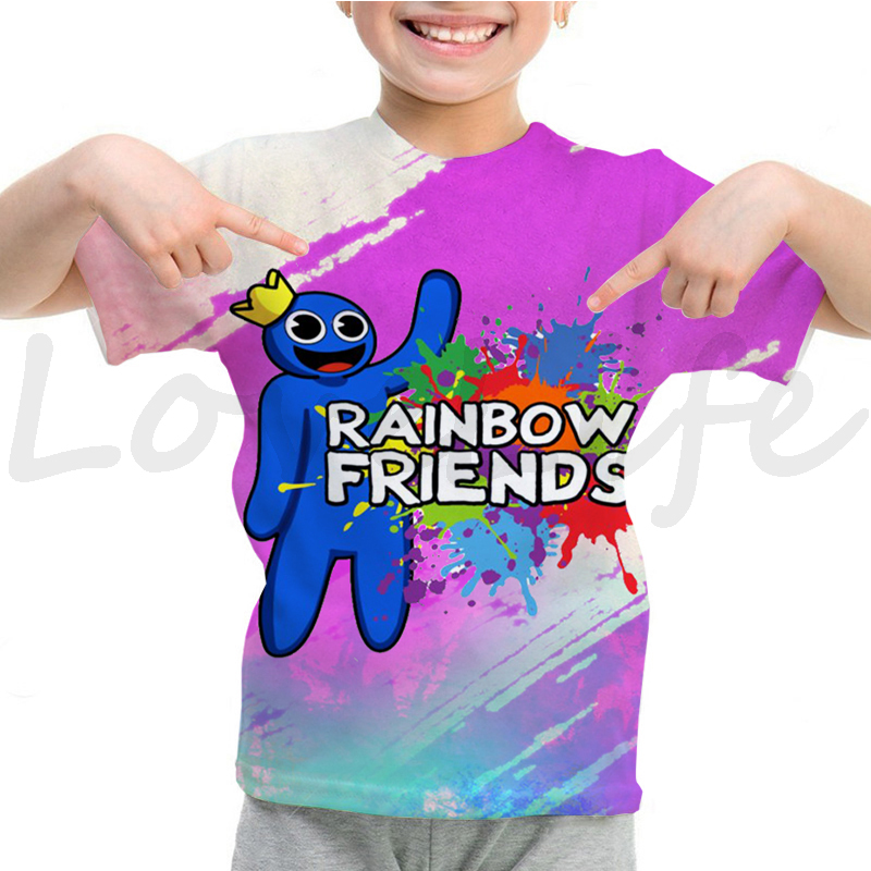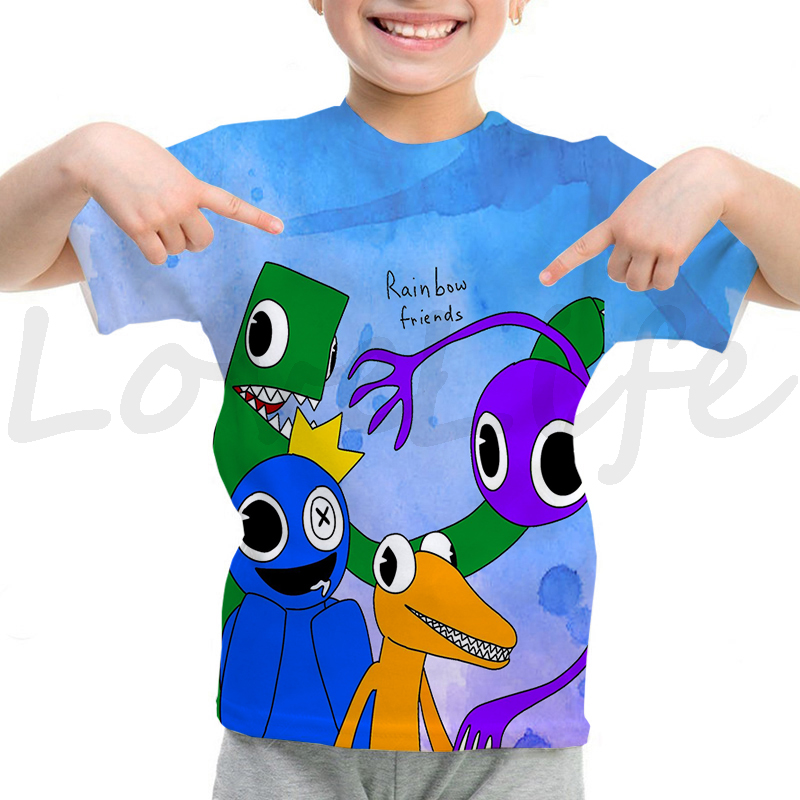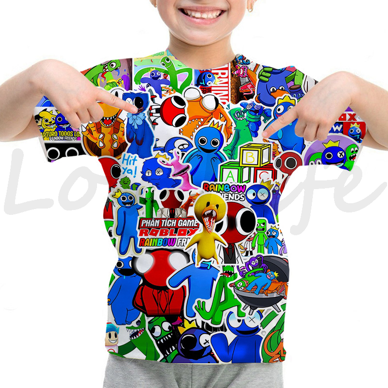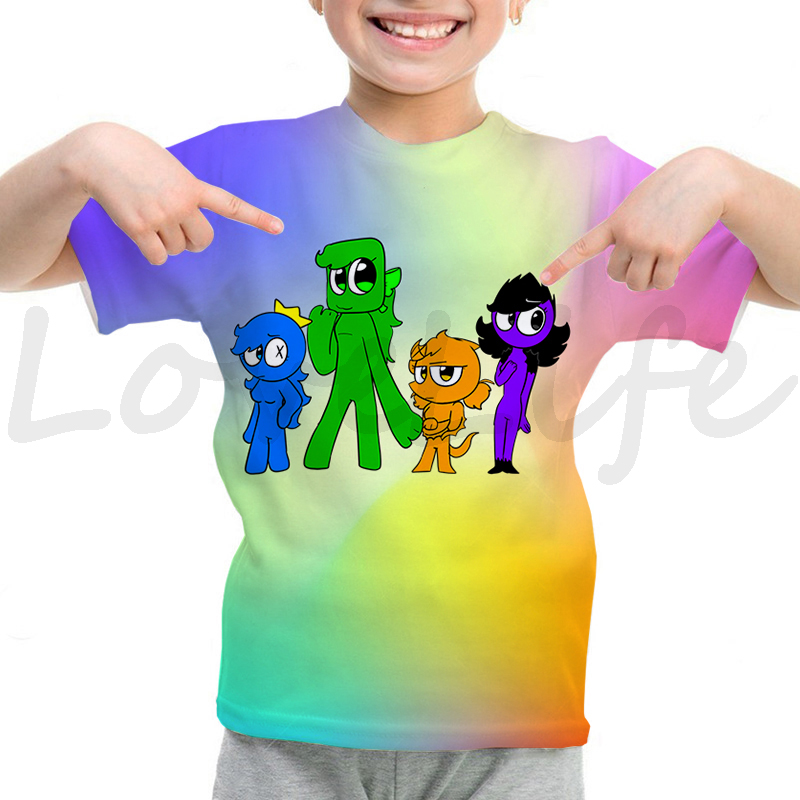 Детская футболка с радужными друзьями для девочек и мальчиков летняя футболка с короткими рукавами и объемным рисунком футболки с рисунками из мультфильмов, футболки с аниме рисунком, Camiseta