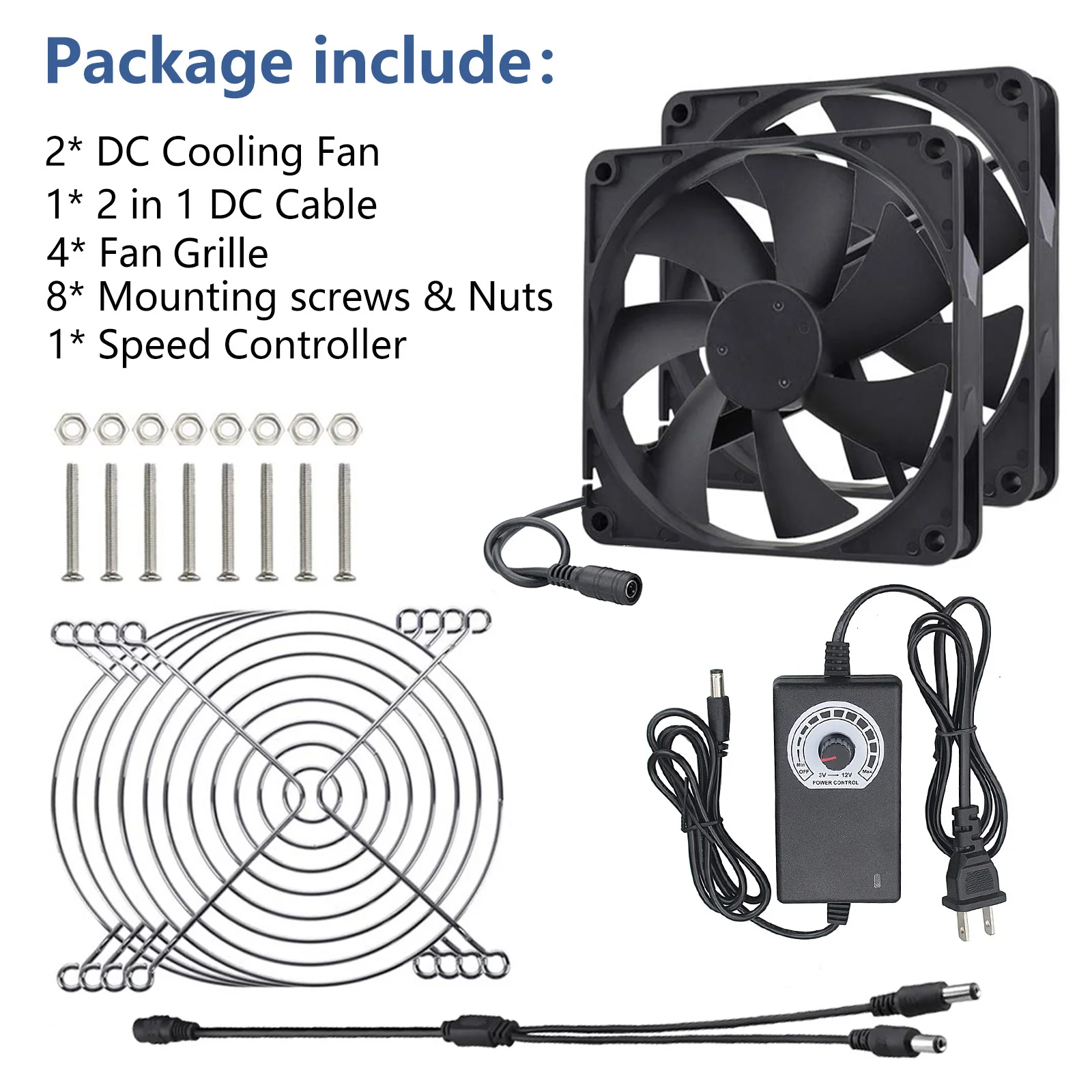 Вентилятор популярен в различных электронике и компонентах; С регулируемым адаптером питания можно легко установить скорость вентилятора для оптимального уровня шума и воздушного потока для различных приложений и шумовых сред.Идеально подходит для проектов, которые требуют охлаждения или вентиляции; Таких как сухая коробка, комнатный завод, холодильник, инкубатор, коробка biltong, барбекю, аквариум, kegerator, шкаф и многое другое. Или в качестве вентилятора для замены различных продуктов.