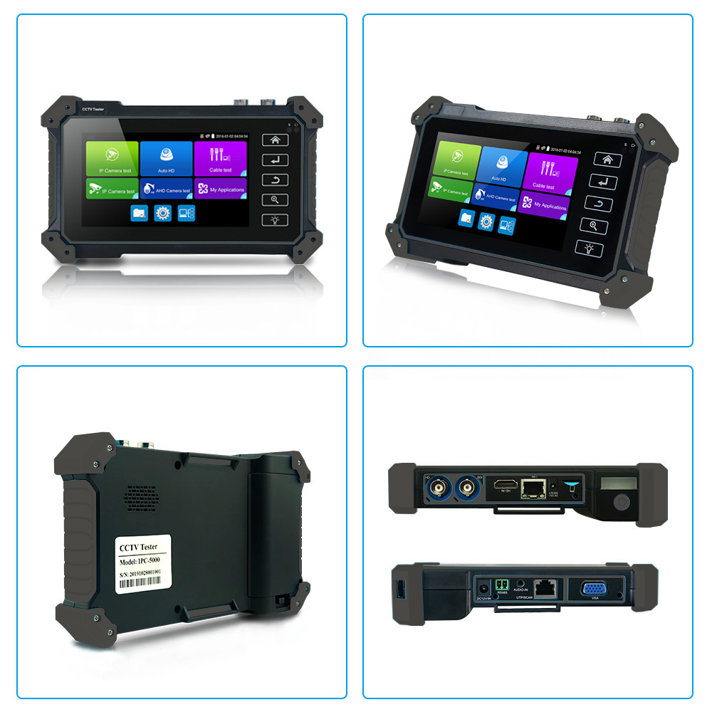 The 5.0 inch IPS touch screen IP camera tester is designed for maintenance and installation of IP analog, HD coaxial cameras as well as other security equipment. The 1920*1080 resolution enables it to display network HD cameras and analog cameras in high resolution. The unit supports many ONVIF PTZ and analog PTZ control, and cable test functions. CCTV installers often need to carry a variety of testing tools to complete their work. If take the all in one camera tester, making working conditions safer and increasing productivity.