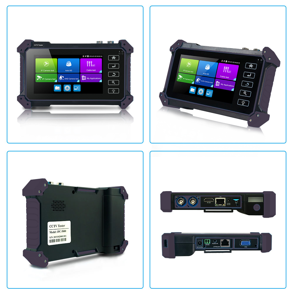 5,4 дюймов IPS сенсорный экран ip-камера тестер предназначен для обслуживания и установки IP аналоговый видеорегистратор, HD коаксиальный камеры, а также другое оборудование для безопасности. Разрешение 1920*1080 позволяет ему отображать сетевые HD камеры и аналоговые камеры в высоком разрешении. Устройство поддерживает множество ONVIF PTZ и аналогового PTZ управления, и функции тестирования кабеля. Для завершения работы установщикам системы видеонаблюдения часто необходимо использовать различные инструменты тестирования. Если взять все в одном тестере камеры, делая условия работы более безопасными и увеличивая производительность.
