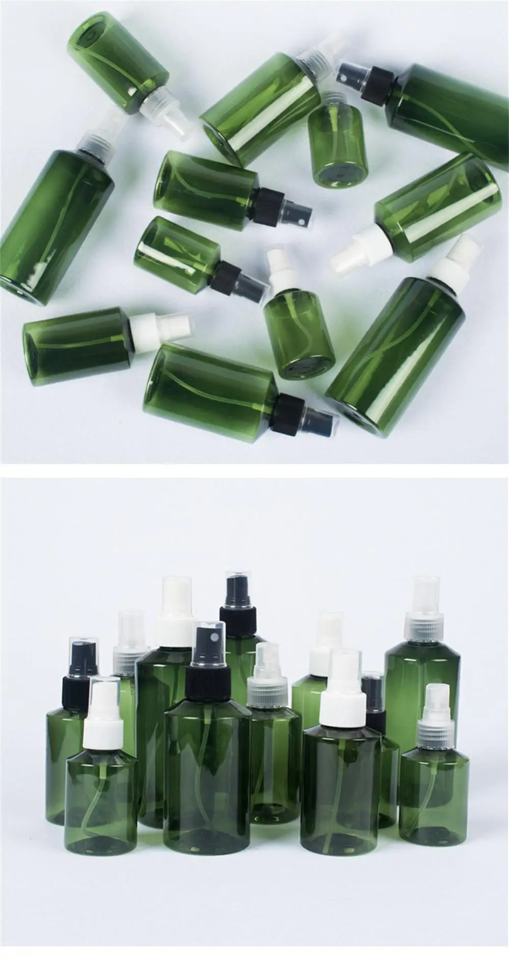 Портативный спрей бутылка зеленый Пластик распылитель бутылки многоразового Путешествия бутылки контейнеры для косметики 50/100/150/200 мл разделены бутылка