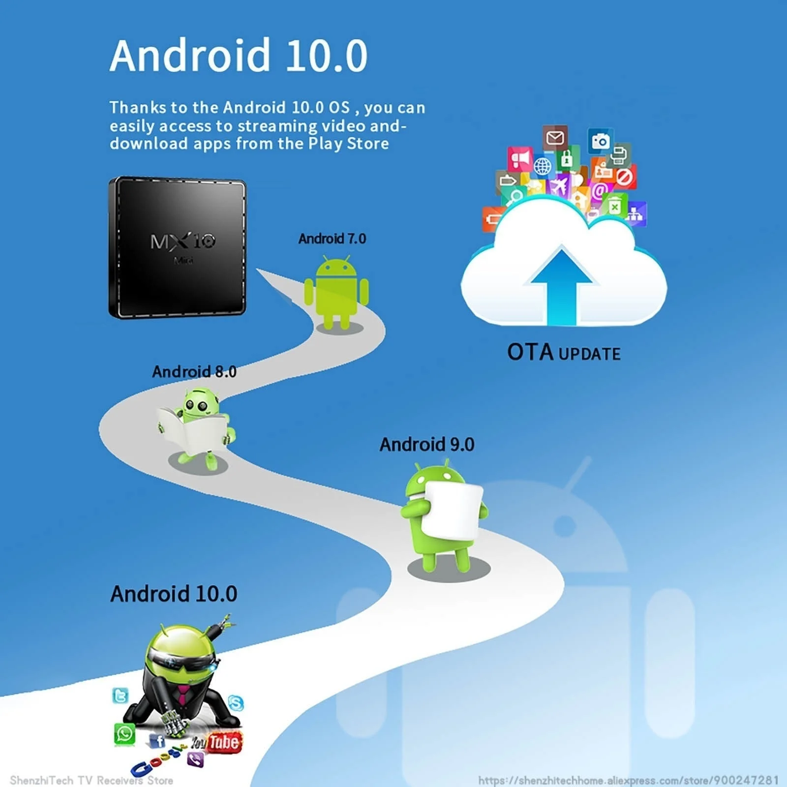 Спасибо за Android 10,0 O.S. Теперь вы можете легко получить доступ к потоковому видео и скачать APPsИз магазина Google Play.