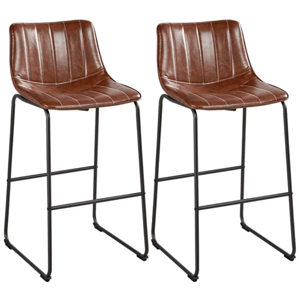 Alden Дизайн искусственная кожа высокий барный стул со спинкой, набор из 2: