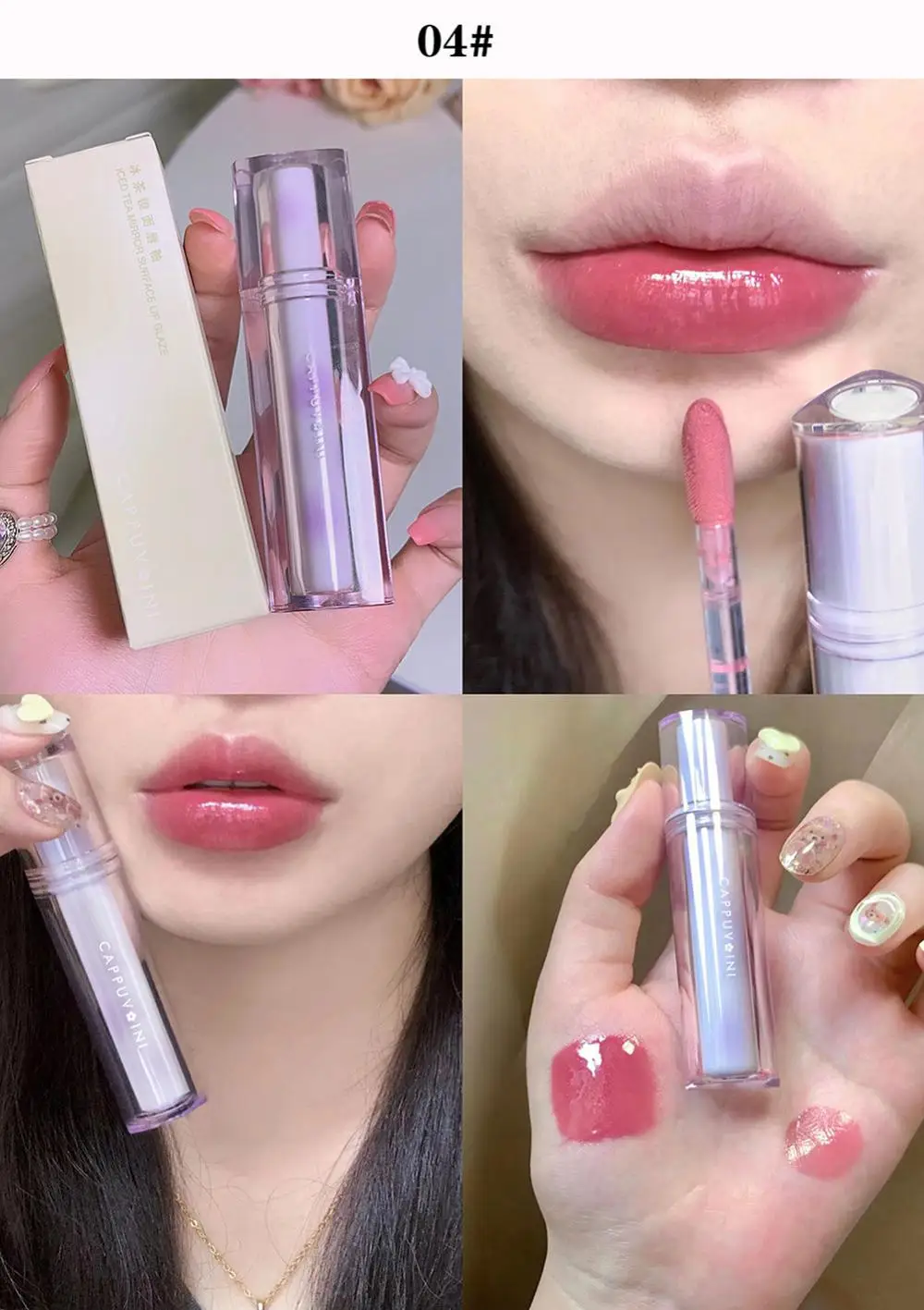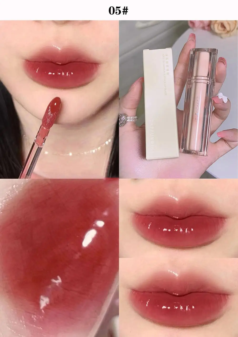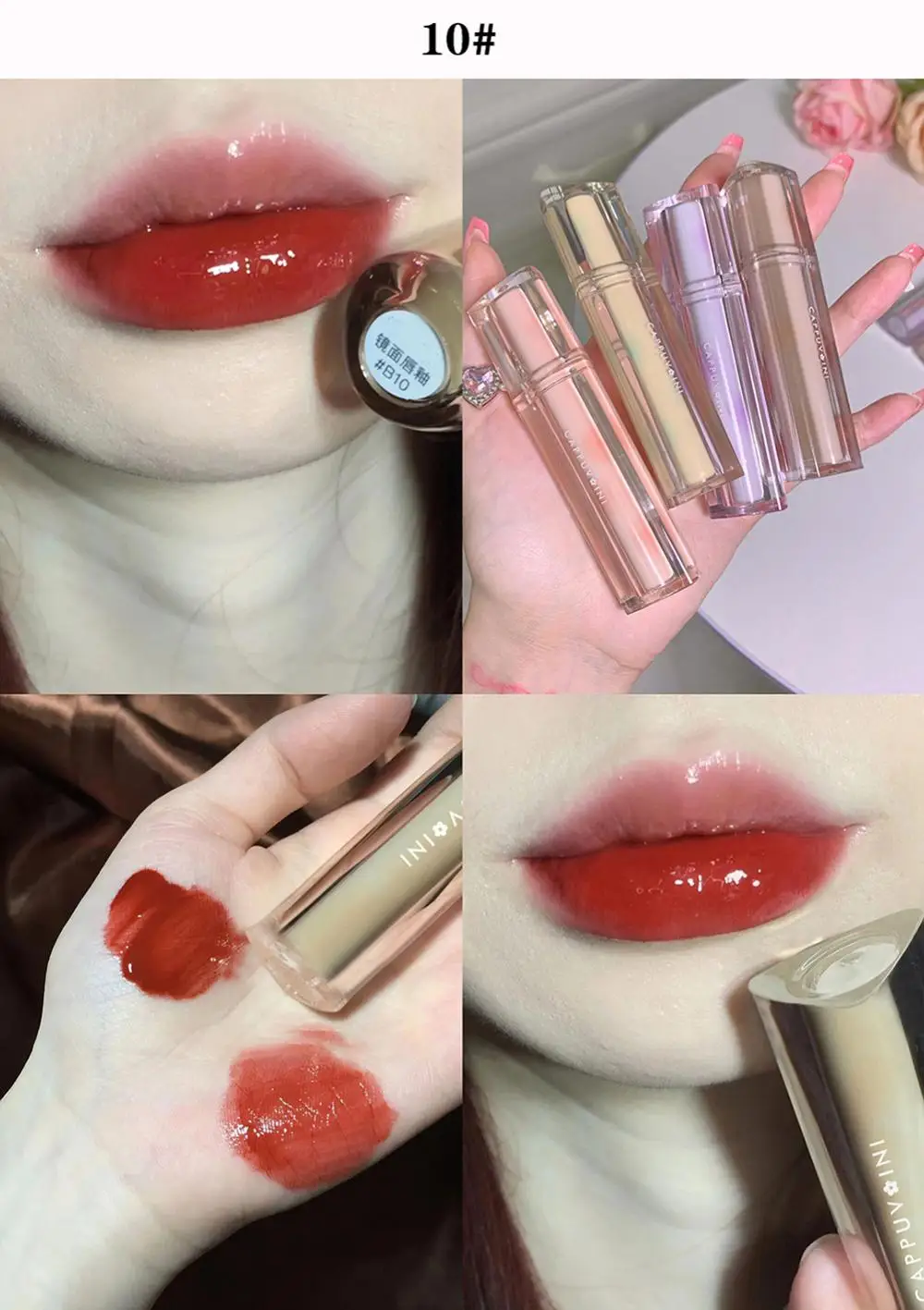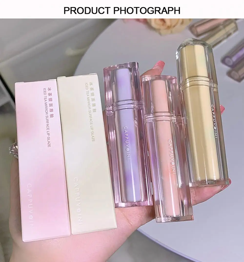 Ледяной чай зеркальная глазурь для губ водный блеск для губ стекло желе для губ треугольник прозрачная трубка легко окрашивать длительный Сексуальный макияж