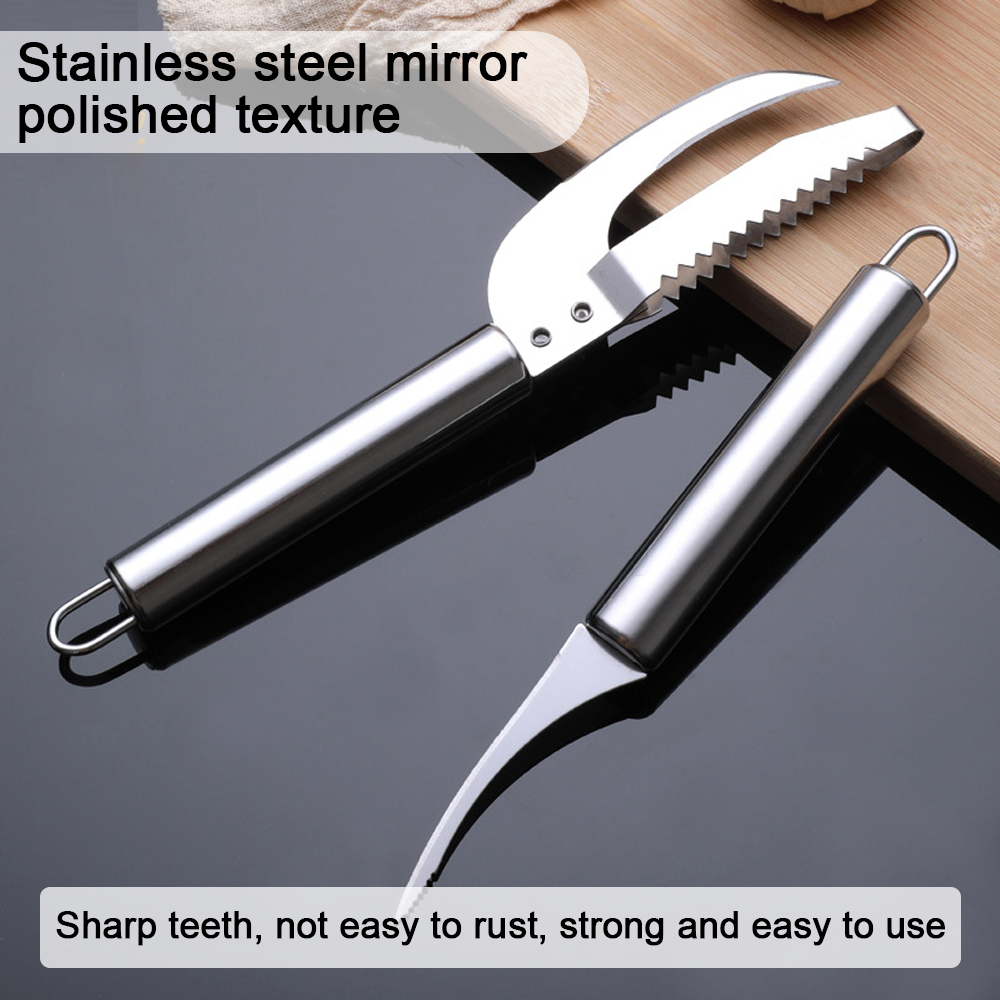 【 2 】 нож для резки/соскабливания/копания 3 в 1: 3 в 1 зубчатая конструкция делает эту машину для рыбных весов очень эффективной и легкой для scrape. Откройте живот/выкопайте/высушите, три функции в одном.