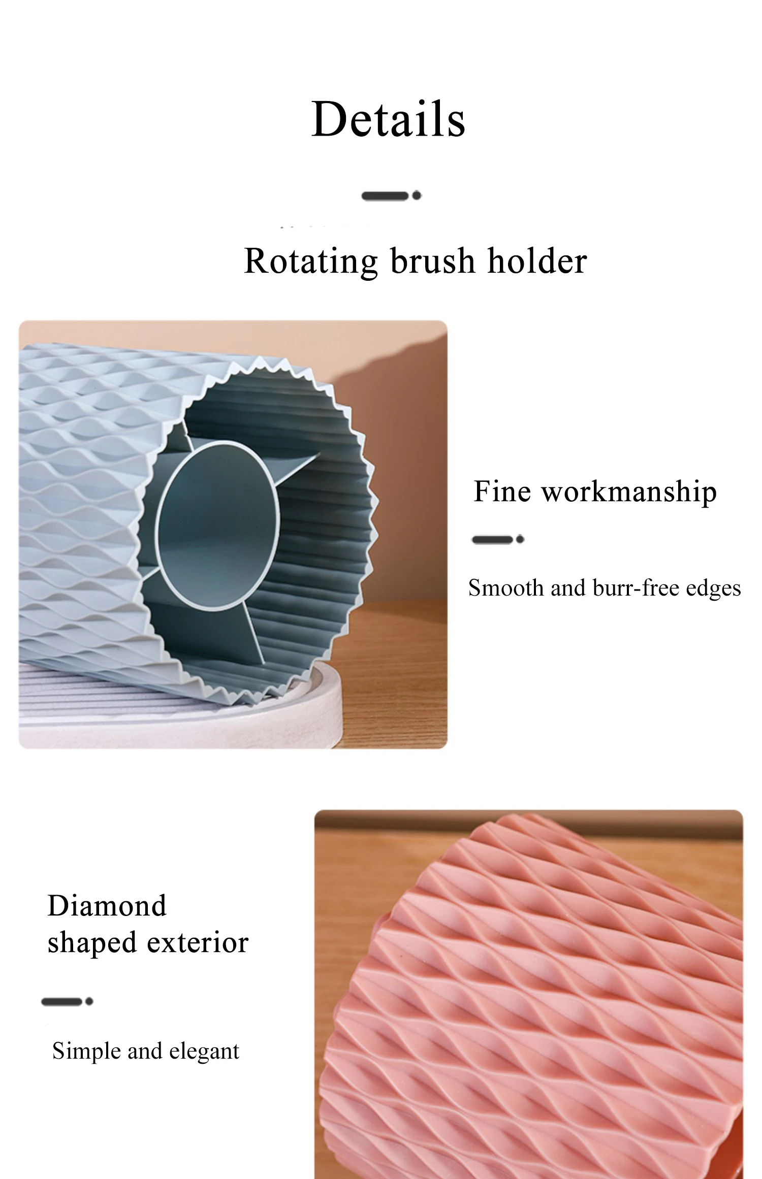 Характеристики: Большая емкость трубки для хранения кистей, вращение на 360 градусов, большая емкость, пять отсеков дизайн, легко подобрать, аккуратное хранение, большая емкость, различные цвета, ваш выбор, вращающийся базовый дизайн, более гибкий выбор, вентиляция, открытый рот дизайн, PP материал, Устойчивый к падению и прочный, не легко деформируется, моющийся, прочный, тонкая работа, внешний вид в форме бриллианта, вращающееся на 360 градусов основание