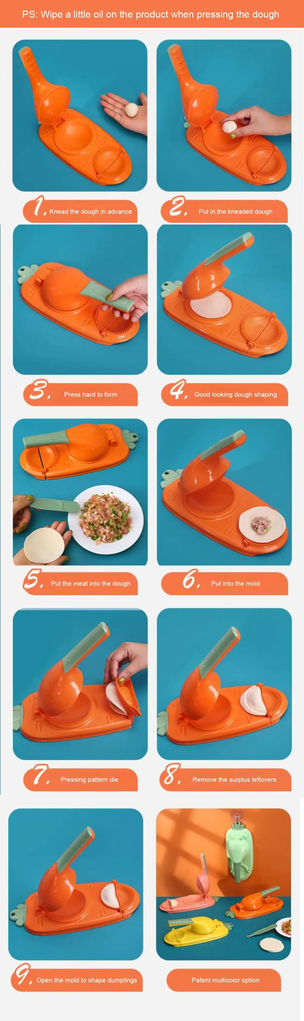 2. Это магический кухонный инструмент, который позволяет вашей семье легко готовить самостоятельно, не беспокоясь о прокатке оберток для клецок. Нажмите на инструмент, и они сразу же сделают красивую клецку.