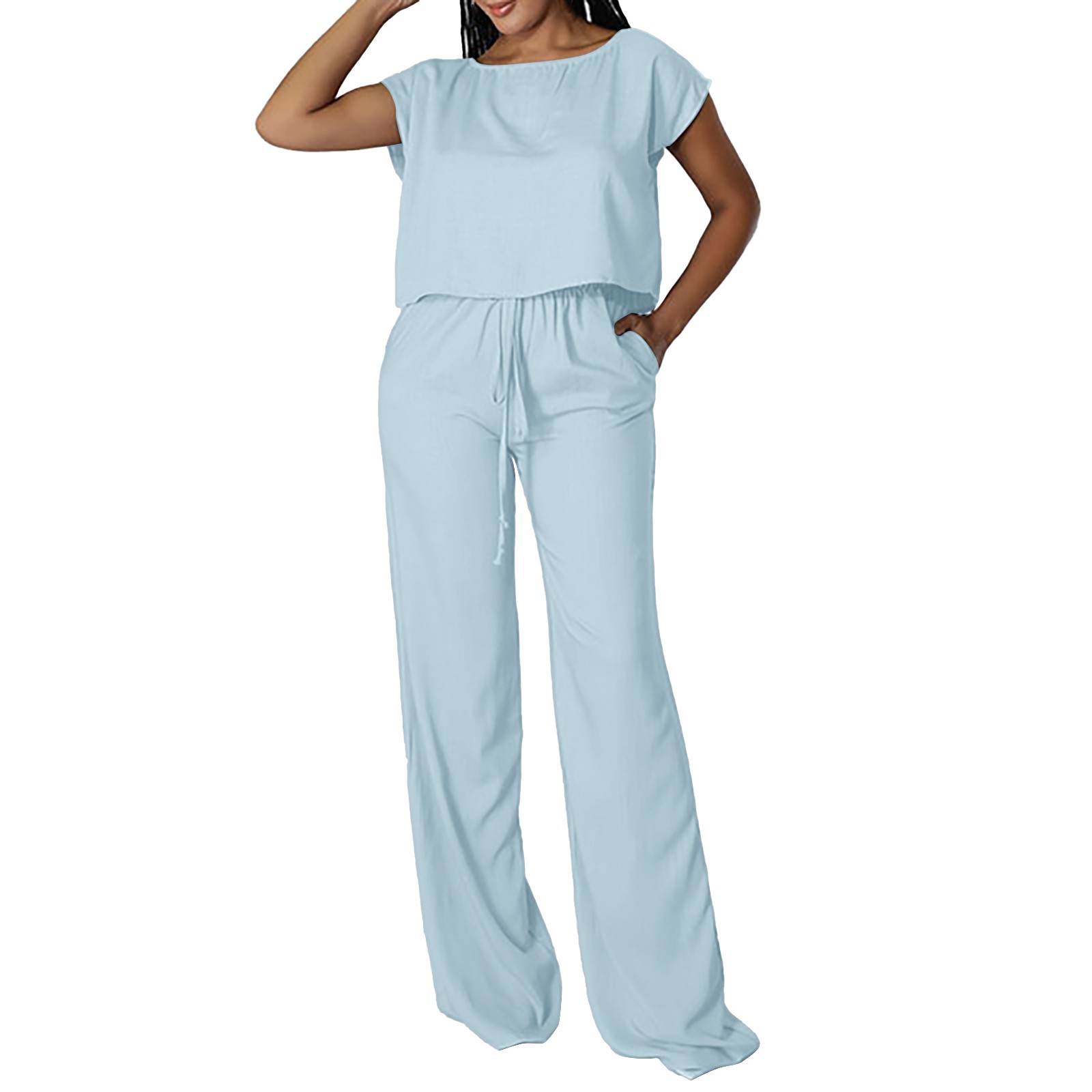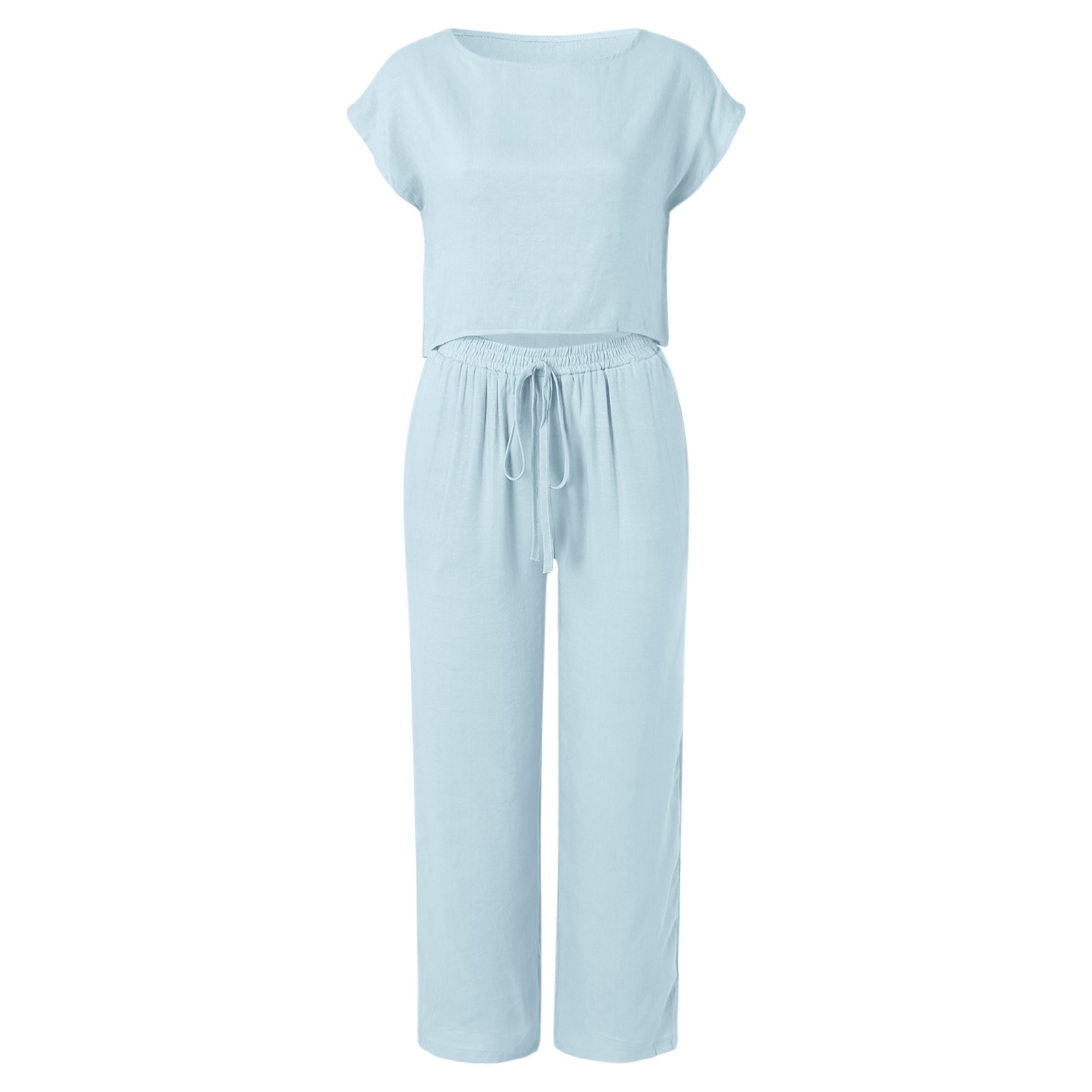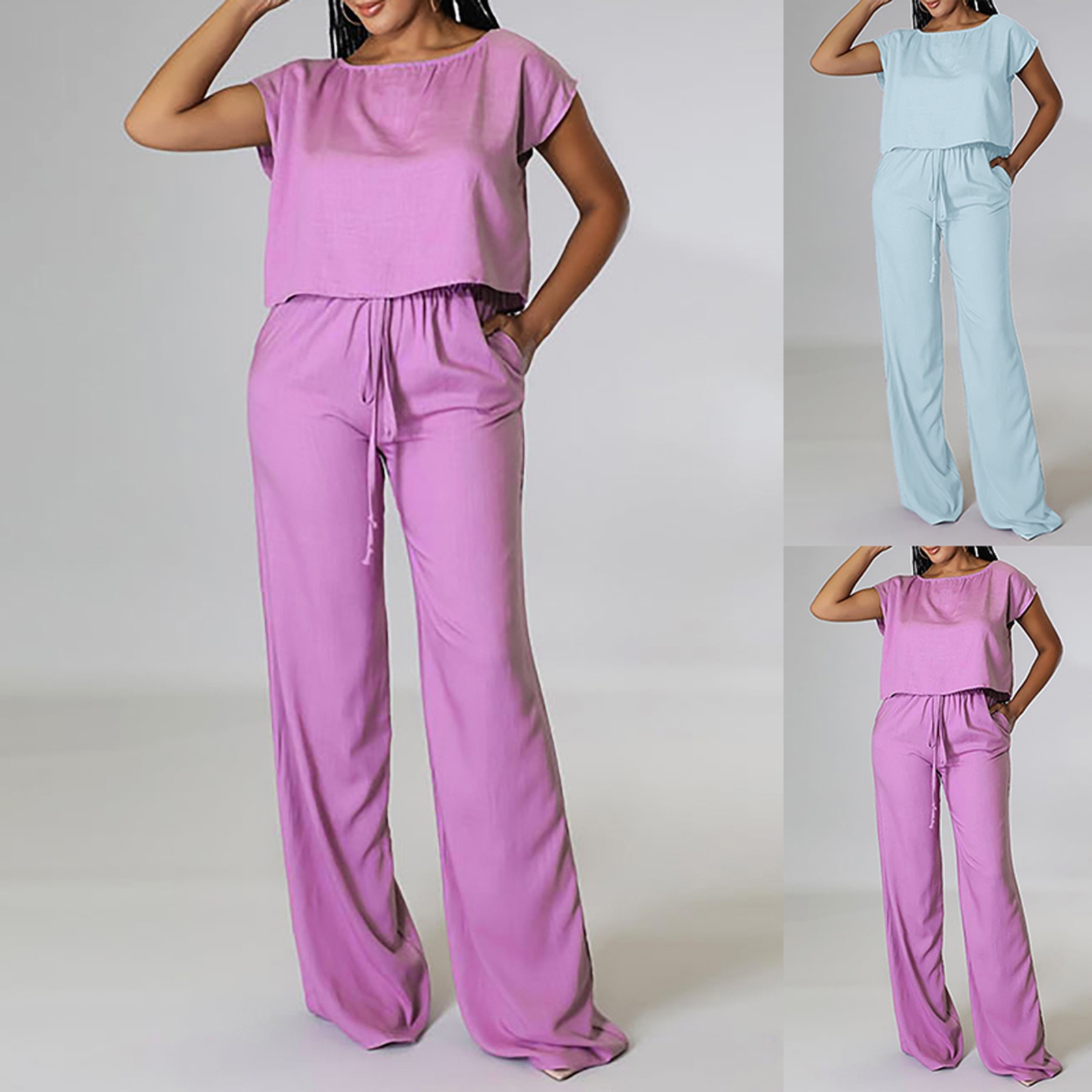 Женские летние однотонные маленькие рубашки с эластичной высокой талией и широкими штанинами, Модный повседневный комплект из двух предметов