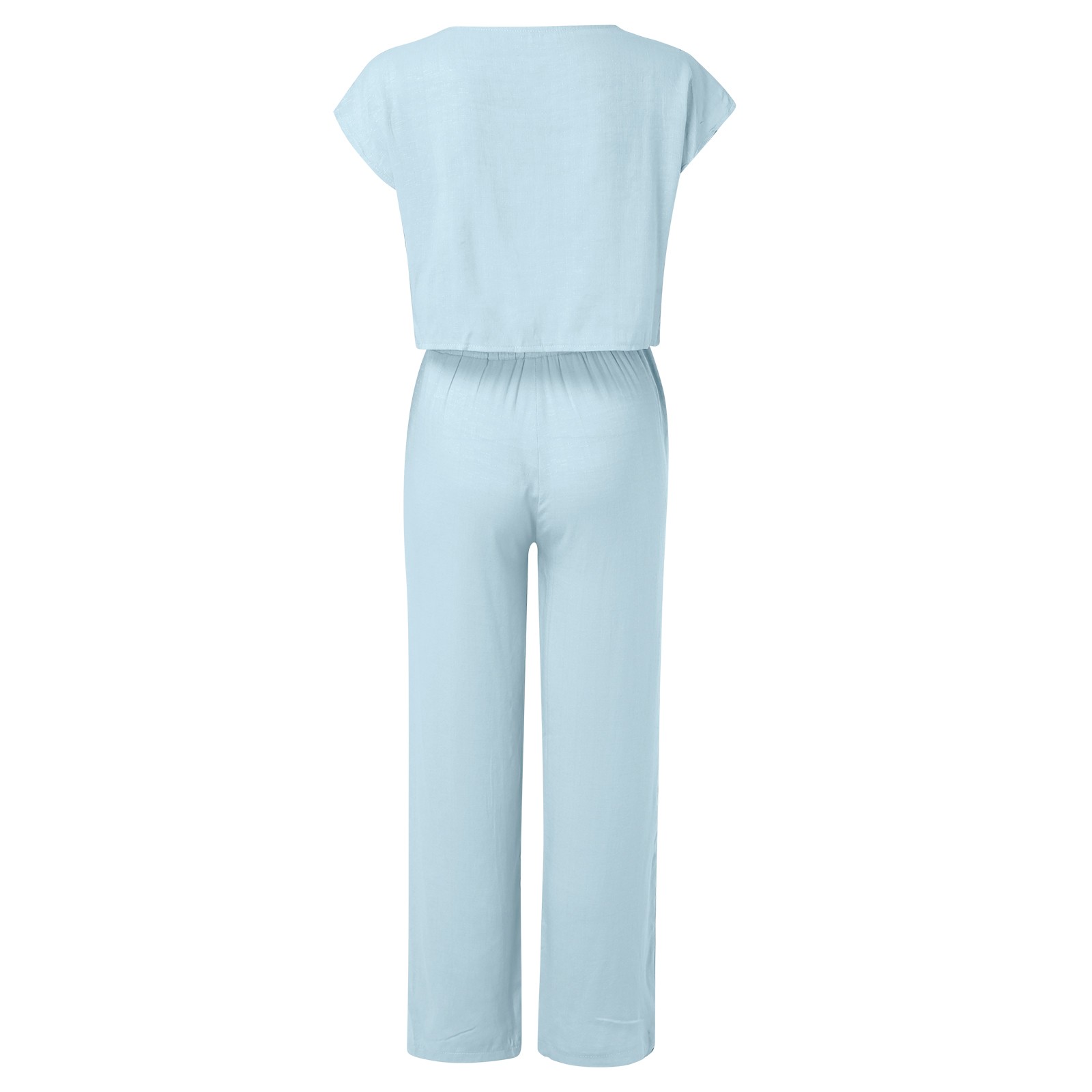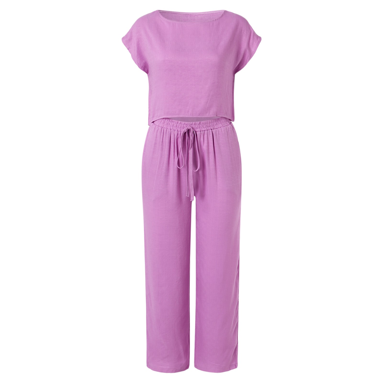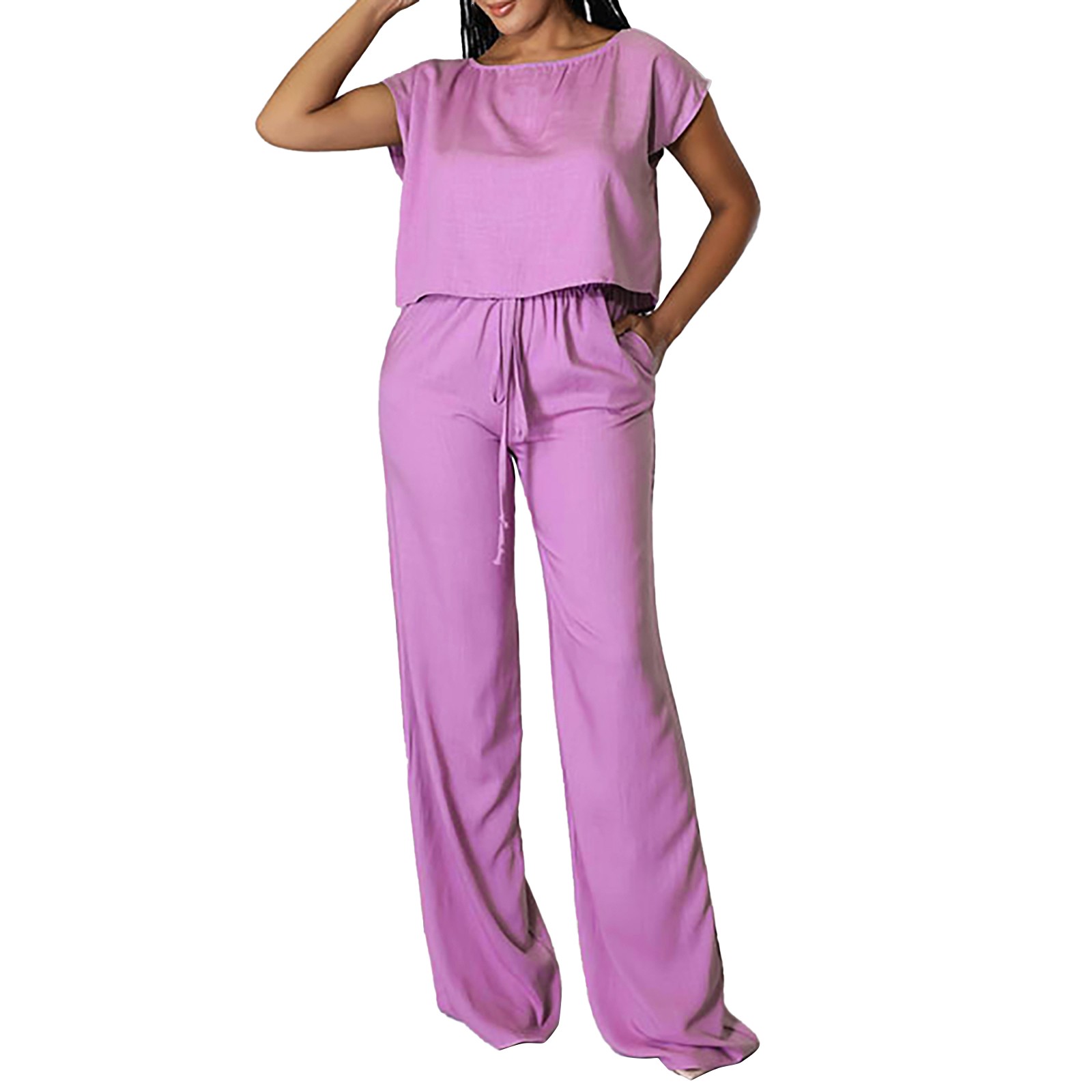 Женские летние однотонные маленькие рубашки с эластичной высокой талией и широкими штанинами, Модный повседневный комплект из двух предметов