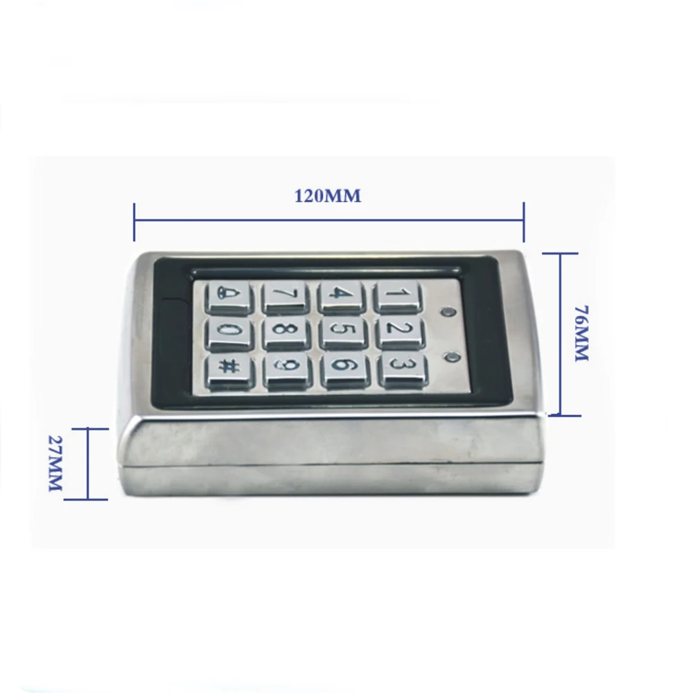 1000 стандартных пользователей. С кнопкой дверного звонка, клавишной кнопкой заднего хода. С интерфейсом WG26. Выход 2 реле С задержкой времени, функция сигнализации Поддержка карты, пароль, Пароль Плюс Карта, чтобы открыть дверь Классический внешний вид с полезной функцией. Профессиональный дизайн для дома и офиса. Поддержка одной двери Может использоваться как автономная клавиатура Не нужно подключаться к компьютеру, может работать отдельно Применение: дом/отель/офис/квартира/foctory и т. Д. Характеристики продукта Capicity пользователя: 1000 пользовательских карт Размеры: 77*120*27 мм (Д/В/Ш) Рабочая частота: 125 кГц Рабочее напряжение: DC12V Рабочий ток: 1.2A Рабочая температура: от-10 до + 70 Расстояние чтения: 0-10 см Относительная влажность: 20%-90%