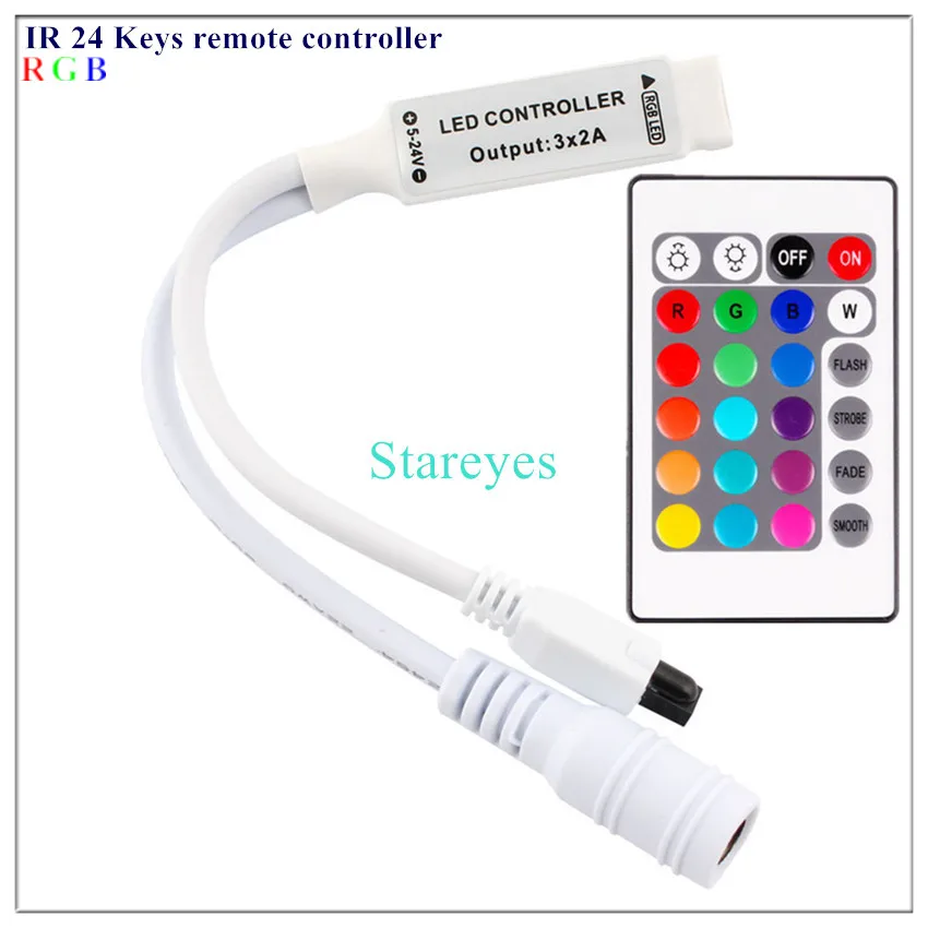 Тип:ИК-пульт дистанционного управления с 24 кнопками(RGB)Совместимость: rgb-лентаРежим подключения: общий анод (+)Вход и выход: DC5-24VМаксимальная выходная мощность: 72 ВтРекомендуется использовать: SMD5050 60 Светодиодный/m RGB полоса DC12V 5 м * 1Максимальный ток нагрузки: 2 А каждого цветаВыход: Три CMOS Слив-открытый выходРабочая температура:-20 °C-60 °CРежим и узор: 16 статических цветов.Размер пульта: 85 мм * 52 мм * 6 мм ± 0,2 ммРазмер контроллера: 50 мм * 34 мм * 22 мм ± 0,2 ммАккумулятор пульта дистанционного управления: 1 * CR2025 (не входит в комплект)Посылка включает в себя:1 * ИК-пульт дистанционного управления с 24 кнопками1 * Руководство пользователя