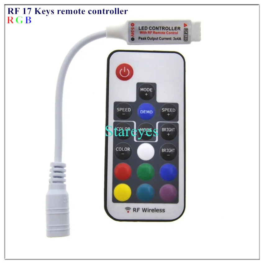 Тип:Пульт дистанционного управления RF 17 клавиш(RGB)Совместимость: rgb-лентаРежим подключения: общий анод (+)Вход и выход: DC5-24VМаксимальная выходная мощность: 72 ВтРекомендуется использовать: SMD5050 60 Светодиодный/mRGB полоса DC12V 5 м * 1Максимальный ток нагрузки: 2 А каждого цветаВыход: Три CMOS Слив-открытый выходРабочая температура:-20 °C-60 °CРежим и рисунок: 7 статических цветов.Размер пульта дистанционного управления: 85 мм * 38 мм * 6 мм ± 0,2 ммАккумулятор пульта дистанционного управления: 1 * CR2025 (не входит в комплект)Посылка включает в себя:1 * пульт дистанционного управления RF 11 клавиш1 * Руководство пользователя