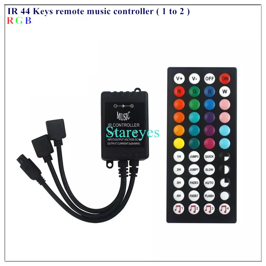 Тип:IR 44-клавишный пульт дистанционного управления музыкальный контроллер (отклонения в размерах на 1-2)(RGB)Совместимость: rgb-лентаРежим подключения: общий анод (+)Вход и выход: DC12-24VМаксимальный ток нагрузки: 2 А каждого цветаМаксимальная выходная мощность: 72 ВтРекомендуется использовать: SMD5050 60 Светодиодный/m RGB полоса DC12V 5 м * 2Выход: Три CMOS Слив-открытый выходРабочая температура:-20 °C-60 °CРежим и рисунок: 20 статических цветов.Размер пульта: 124 мм * 55 мм * 6 мм ± 0,2 ммРазмер контроллера: 50 мм * 34 мм * 22 мм ± 0,2 ммАккумулятор пульта дистанционного управления: 1 * CR2025 (не входит в комплект)Посылка включает в себя:1 * ИК 44 клавиши пульт дистанционного управления музыкой (от 1 до 2)1 * Руководство пользователя