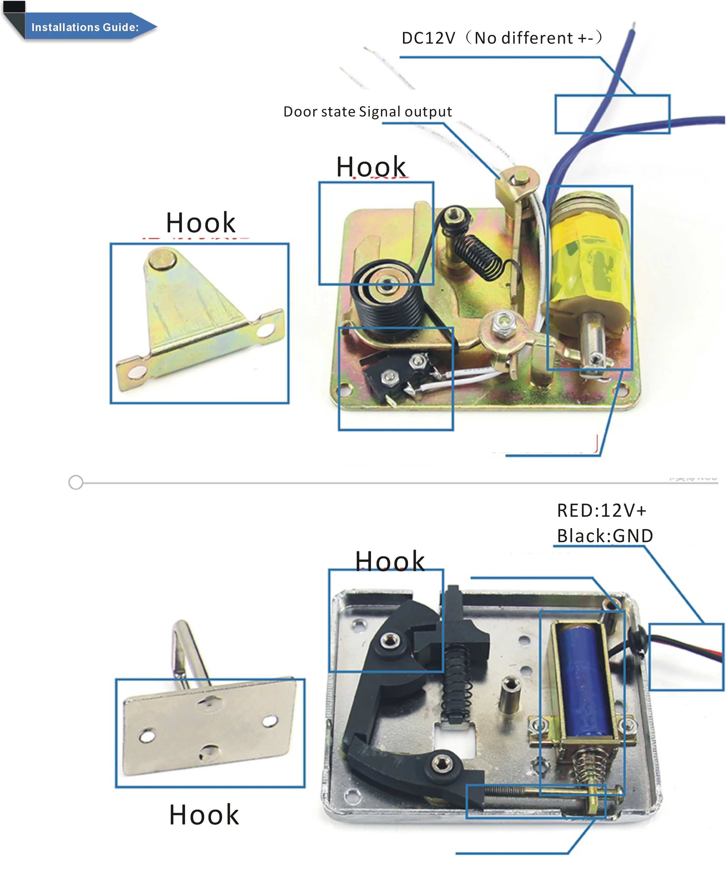 Модель: - XG08 Тип безопасности: электрический замок (NC), питание блокируется Размеры: 95 x78x28mm Рабочее напряжение: 12 В постоянного тока Рабочий ток: 500 мА Вес: 0,38 кг Область применения: дверь и окно, коробка, шкаф, сейф, хранение контента ковчега Синий: 12 В + Синий: GND В настоящее время> 1.5A
