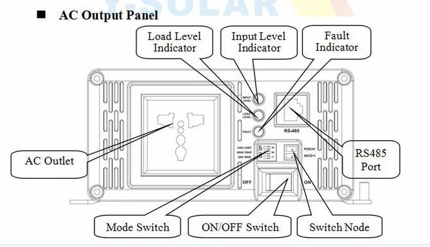 Пожалуйста, включите AC нагрузки один за другим после того, как выход инвертора является нормальным.