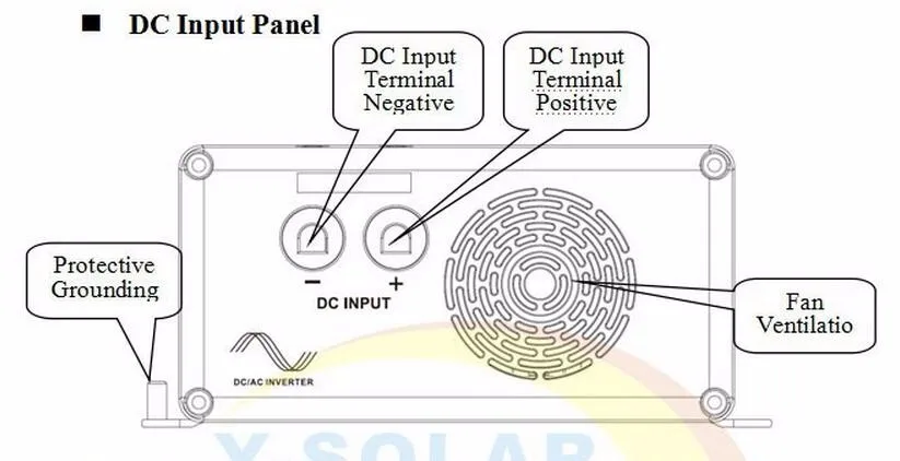 Убедитесь, что предохранитель или выключатель выключен между батареей и инвертором. l Подключите аккумулятор ('+' терминал с красной линией, '-' с черной линией). Не подключайте их контрариями, иначе инвертор будет поврежден. l переключатель на предохранителе или выключателе. Включите инвертор, а затем включите нагрузку по одному. Проверьте состояние работы инвертора и нагрузки. «Зеленый» светодиодный индикатор сбоя означает, что состояние нормальное. l Если есть различные нагрузки, то рекомендуется сначала включить нагрузку с большим током запуска, например, телевидение, Затем включите нагрузку, например лампу, когда инвертор работает стабильно. l Если светодиодный индикатор неисправности «Красный» и звуковой сигнал тревоги или нет выхода при включении устройств, выключите нагрузку и инвертор питания немедленно. Проверьте систему, сославшись на руководство по поиску и поиску неисправностей. Включите устройства снова в соответствии с методами работы после удаления сбоя.