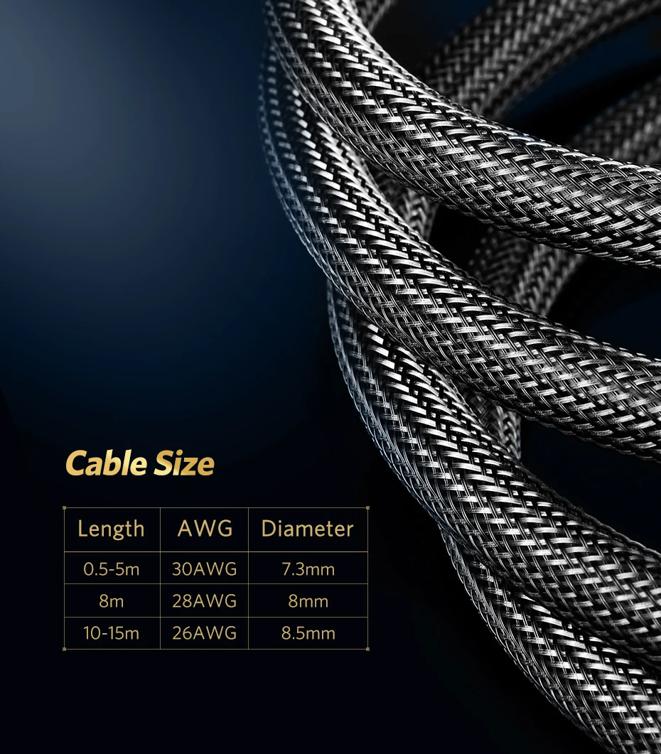 (1) роскошная модель из цинкового сплава (круглый кабель): Лидер продаж, корпус из нейлоновой оплетки, опционально 0,5-15 м