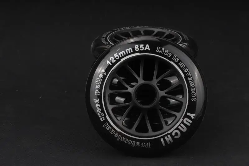 Черное колесо 125 мм имеет твердость 85А, изготовлено из прочного полиуретана, хорошая эластичность, он имеет хороший баланс внутреннего и наружного скоростного катания;