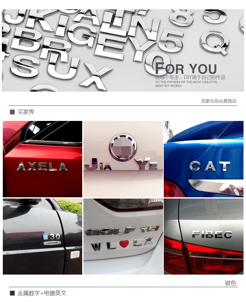 Название: DIY 26 букв + 10 цифр/звезда/сердце отдельная наклейка matal эмблема Материал: цинковый сплав (полностью металл, не пластик, не ПВХ, не АБС) Характеристики: 3D дизайн, отличное качество, устойчивость к коррозии и водонепроницаемость, никогда не выцветает Размер: как показано на фотографии (маленький размер: высота 2,5 см) Цвета: серебристый/золотой/красный/желтый Подходящее место: в любом месте Инструкция: Поставляется с клейкой лентой 3M на задней части, легко приклеивается и отклеивается, не нужно сверлить, сохраняет оригинальный вид автомобиля Пожалуйста, используйте моющее средство, чтобы очистить поверхность целевой области, прежде чем наклеить его на Используйте фен для нагрева ленты 3M немного Прикрепите его и не стирайте в автомобиле в течение 48 часов, чтобы достичь лучшей адгезии Попробуйте закончить шаги один раз, не отклеивайте его из одной области и не прилипайте к другой области, чтобы избежать плохой адгезии Советы: Стильный автомобильный значок сделает вашу машину более очаровательной. Все фотографии-это настоящая съемка, то, что вы видите, это то, что вы получаете! Из-за различных мониторов изображения могут не отражать фактический цвет изделия.