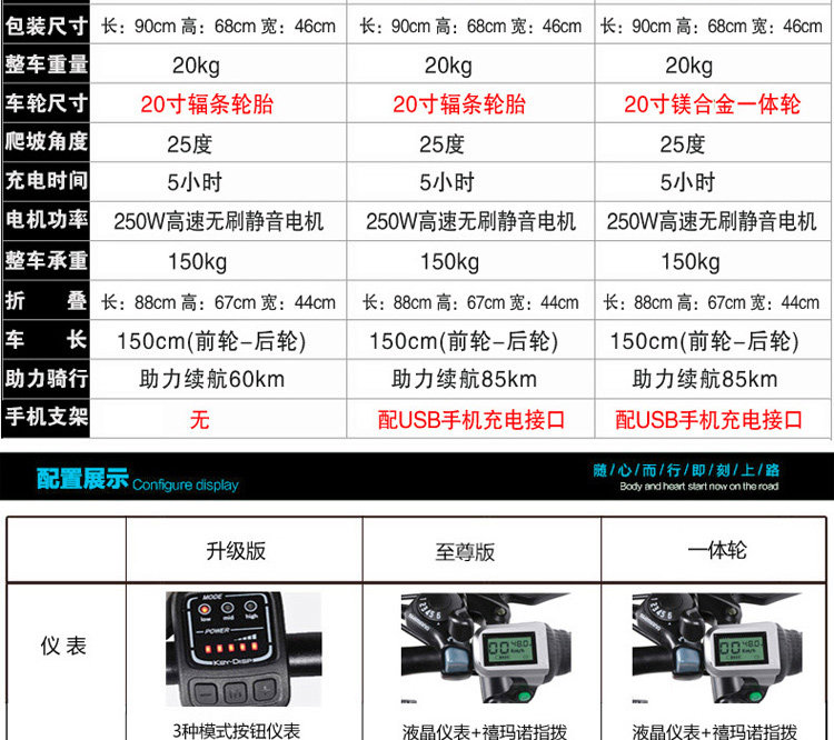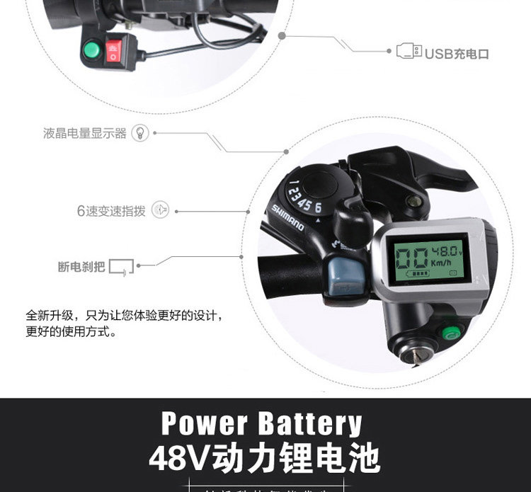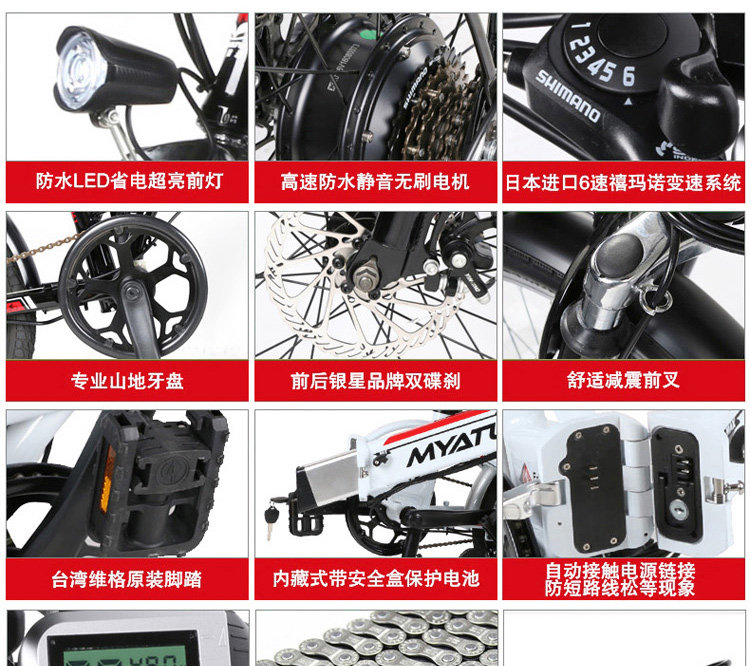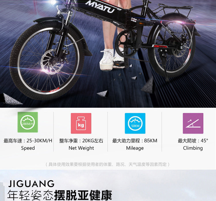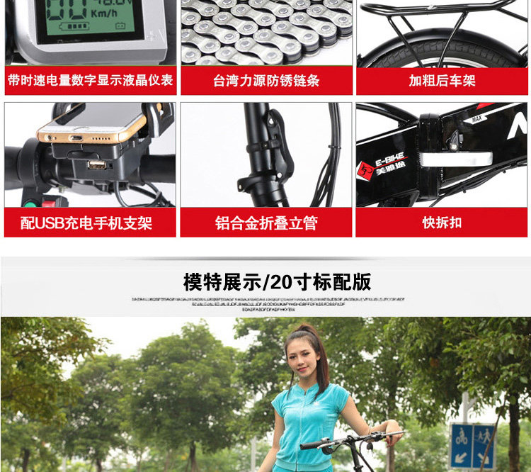 Размеры 20" Материал рамы Авиации Алюминий из алюминиевого сплава Макс. Скорость 25 ~ 30 км/ч Батарея 48V / 10AH литиевая батарея Стоп-сигнал Передние и задние дисковые тормоза Режимы работыMode1: работаДля езды на велосипеде и Батарея