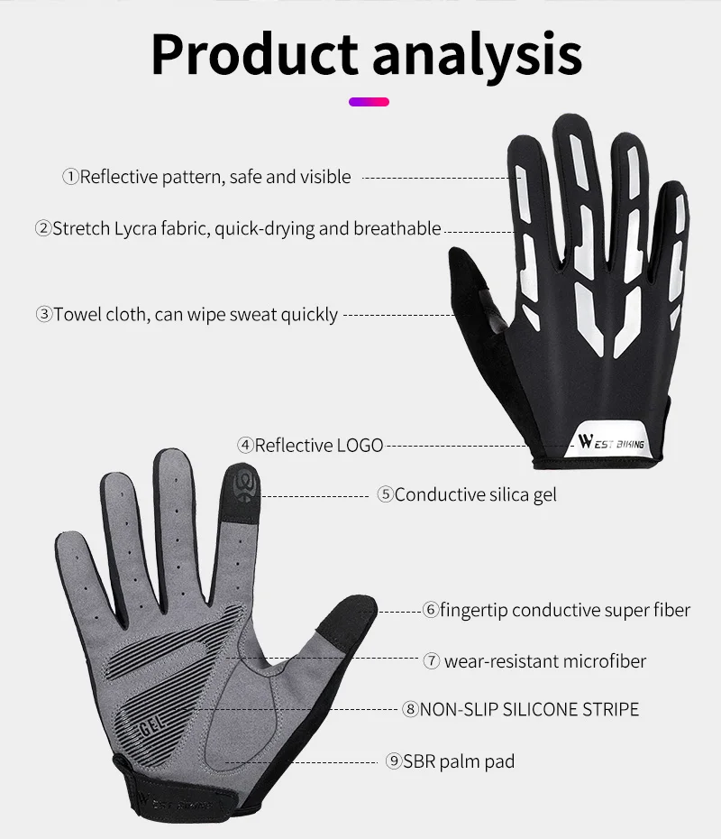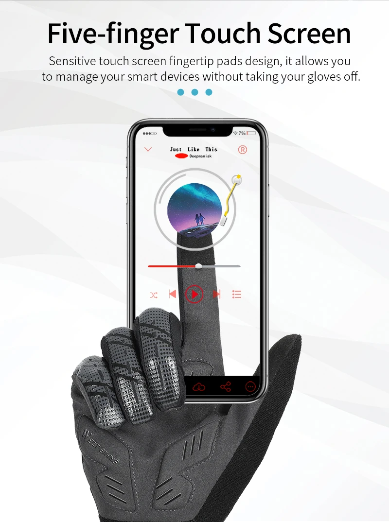 Название позиции: West Biking 2021 Мужские Теплые Перчатки для фитнеса с полным пальцем для занятий спортом на открытом воздухе зимние осенние велосипедные перчатки