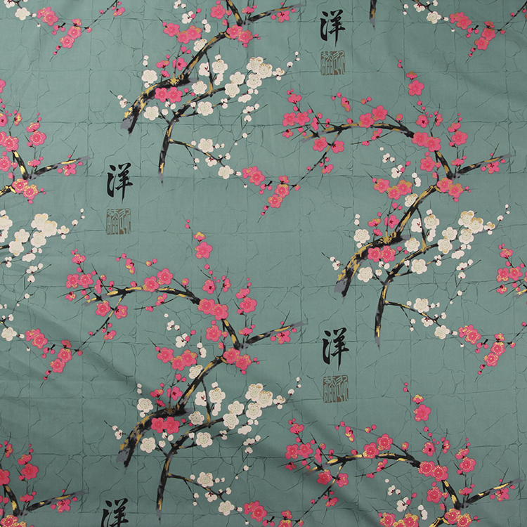 fitted bodice, wrap bust, short sleeve Japanese landscape scenes and cherry blossom pattern back zipper, no belt cotton material, unlined no stretch, if between size recommend larger size