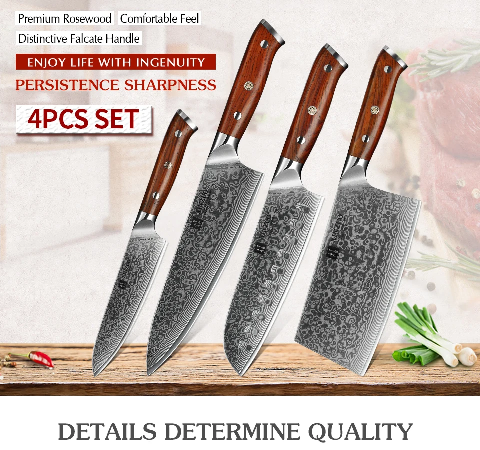 XINZUO Yu серия 4 шт Дамасская сталь набор ножей