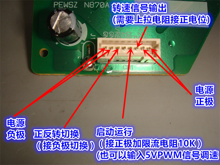 Хотя двигатель номинально 24 В, фактический тест на минимальное напряжение 10 в может выполнить фактическое испытание на напряжение 12 В ток без нагрузки 0,9а, обратная скорость 6000R. Напряжение 24 В ток без нагрузки составляет 0,8а, скорость вращения составляет около 11000 об/мин. Этот двигатель поддерживает переключение вперед и назад. Переключение внимания не должно переключаться во время работы. Высокоскоростная операция неожиданно останавливает обратное давление, и легко повредить привод. Эта линия запуска двигателя DEC может вводить PWM регулирование скорости сигнала, амплитуда ширины импульса 5 В может работать нормально, непосредственно подключается к положительному потенциону 5 В максимальная скорость работы, Я тестирую прямое входное напряжение 12 В, также не поврежден привод, конец DEC непосредственно превышает 5 В, рекомендуется подключить один резистор с ограничением тока 10 k. Бесщеточная проводка двигателя должна обратить внимание на неправильный электродвигатель второго горения (этот двигатель является внешним ротором высокоскоростной работы, если вы работаете в течение длительного времени, пожалуйста, сделайте хорошую работу, 12 вольт 2-3 ампер постоянного тока), источник питания будет слишком коротким, чтобы остановить ток, неожиданно очень большой, Легко повредить привод, если вы используете скорость pwm, чтобы остановить медленно, не будет высокого давления назад электродвижущая сила, привод гораздо безопаснее.