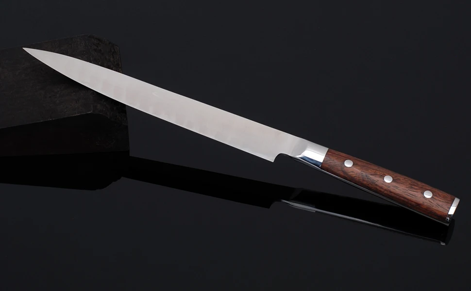 -Этот нож не предназначен для использования на твердых предметах, таких как замороженная еда, кости, щелочи и низкокачественные разделочные доски. Предназначен для использования только для бескостной рыбы.