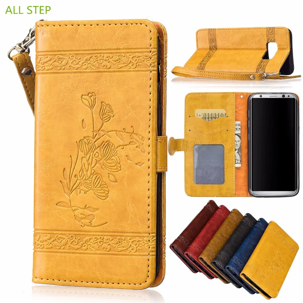 ALL STEP Luxury 3D Print Flower Flip Wallet Leather Case For Samsung S5 S6 S7 Edge Silicone Protective Cover For Samsung S8 Plus