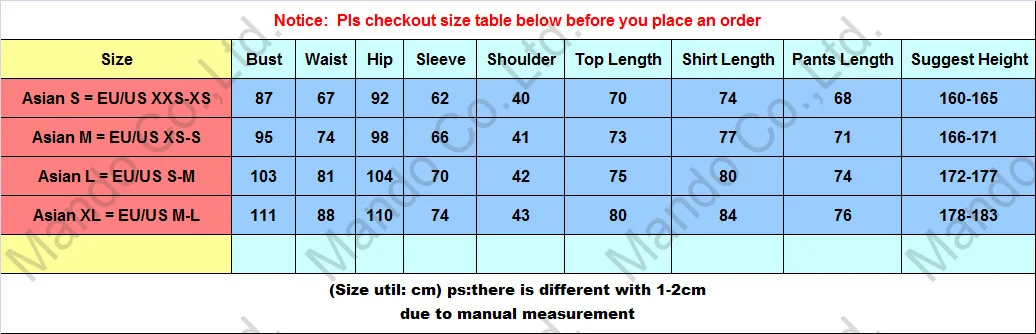 Азиатский S = ЕС/США XXS-XS