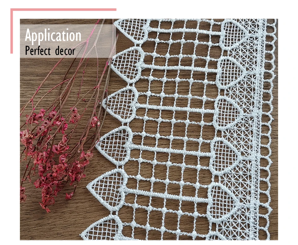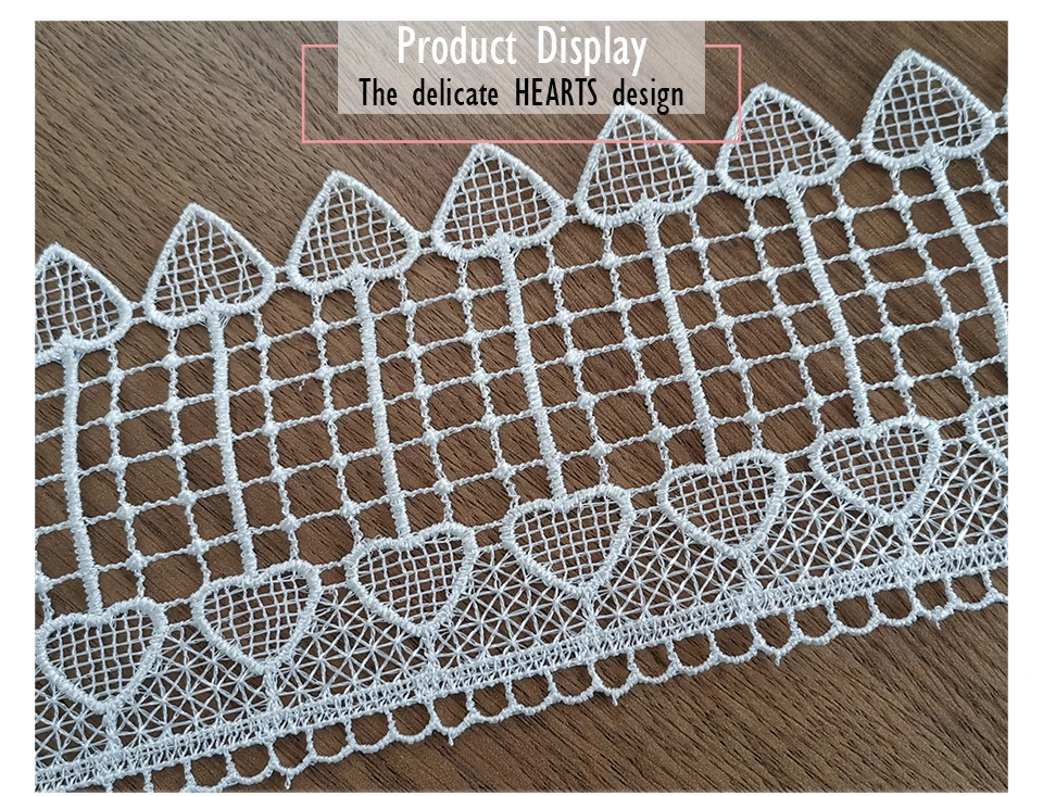 Прекрасное широкое кружево с вышивкой в виде сердца