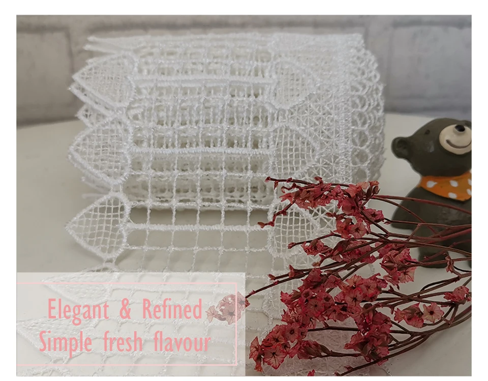 15 ярдов, чистый полиэстер, белая Водорастворимая вышитая кружевная кайма для домашней одежды текстильная отделка