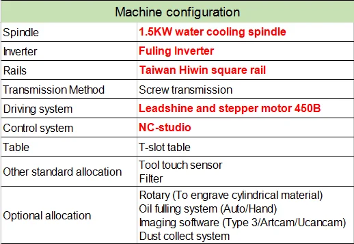 -max работы Speed из1.5 кВт шпиндель водяного охлаждения(Changsheng/hsd) может up к24000 об./мин., который ensure в working Speed всей машины.