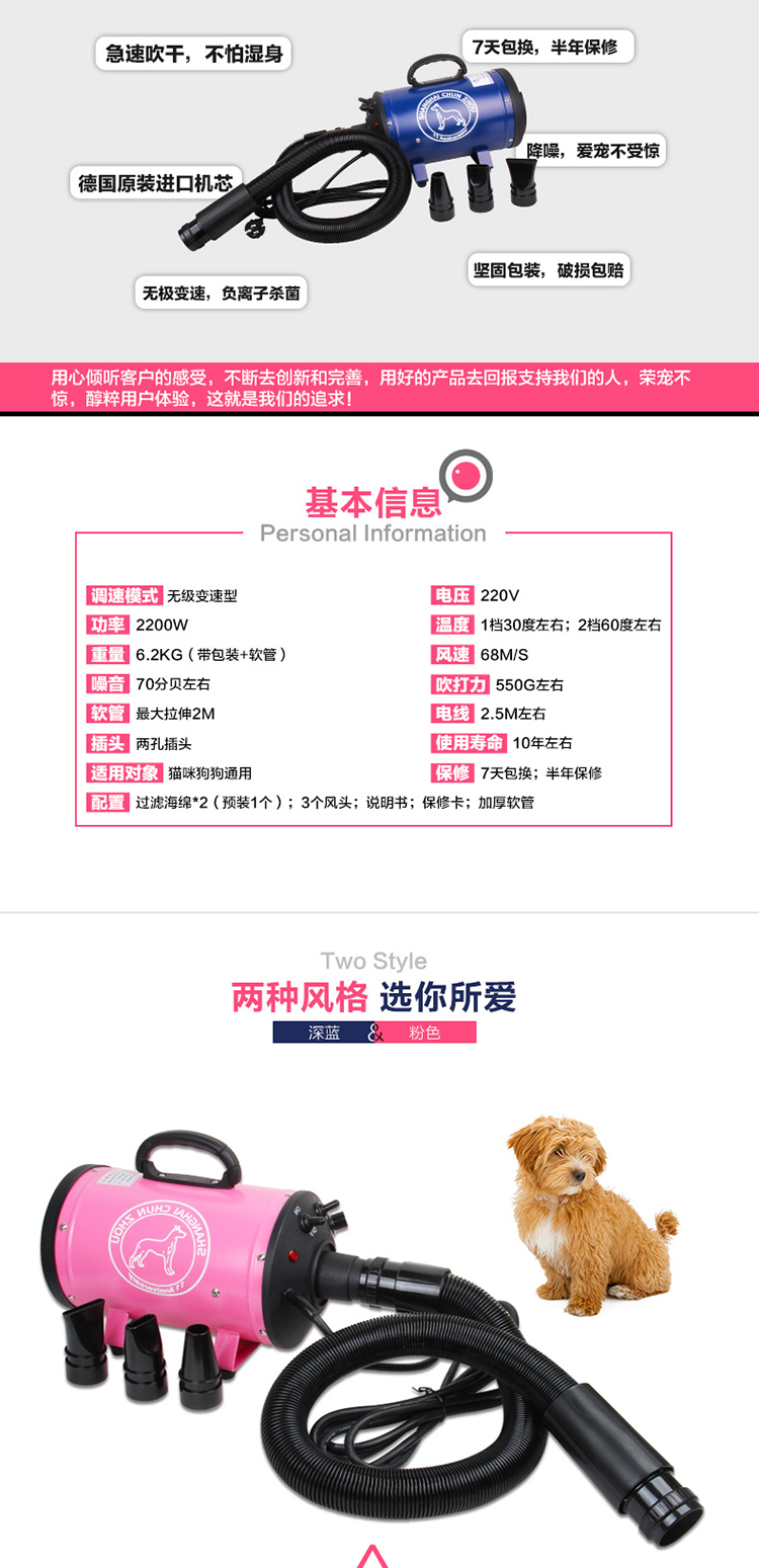 commodity details:BS-2400W230V/110V power supply, portable, light and convenient, especially blowing warm and hot air features, and applicable to all types of pets