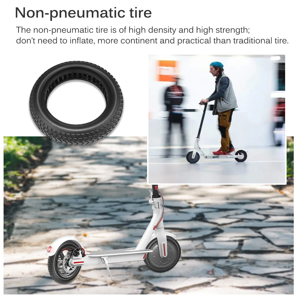 Прочный и продуманный материал Изготовлено из чистого и прочного резинового материала, эта шина не токсична, не имеет запаха, износостойкая, не проникающая и гибкая. Без надувания Непневматические шины высокой плотности и высокой прочности; Не нужно надувать, более Континентальный и практичный, чем традиционные шины. Ударопрочный и буферный Эластичная резина в сочетании с научным сотовым дизайном помогает сделать нагрузку на шины более равномерной и поглощать шок. Противоскользящий рисунок протектора Противоскользящий протектор покрывает внешнюю часть шины, повышая безопасность и предотвращая скольжение, особенно когда скорость высокая или дорога грязная или влажная. Совместимость Эта отличная шина предназначена для электрического скутера Xiaomi M365 или других электрических скутеров. Характеристики: Тип: шина для электрического скутера Материал: резина Количество: 1 шт./2 шт. Цвет: черный Наружный диаметр: 20,5 см Внутренний диаметр: 13,5 см Ширина: 5 см Вес нетто: 580 г/20,46 унций Упаковка: 1 * шина для электрического скутера