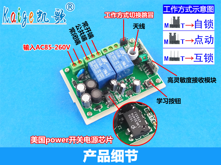 Плата приемника дистанционного управления компании подходит для электрических схем управления, таких как Противоугонная сигнализация, электрические двери и окна дистанционного управления, контроль сигнала, Промышленный контроль, подъемное оборудование и т. д. Релейные контакты всех модулей переключателей дистанционного управления независимо выводятся, что очень подходит для прямого управления различными нагрузками. Продукт использует технологию цифрового беспроводного кодирования, которая не имеет направленности, и переключатели не мешают друг другу. Компоненты цепи переключателя дистанционного управления 220V полны материалов. Печатные платы изготовлены из высококачественных двухсторонних печатных плат. В части источника питания используются чипы профессионального переключения питания LNK304PN, импортированные из США, которые имеют стабильную производительность и низкое энергопотребление. Недорогая понижающая схема сопротивления, предохранитель и Варистор эффективно защищают печатную плату, что значительно улучшает срок службы всего пульта дистанционного управления. Покупатели могут купить после сравнения.