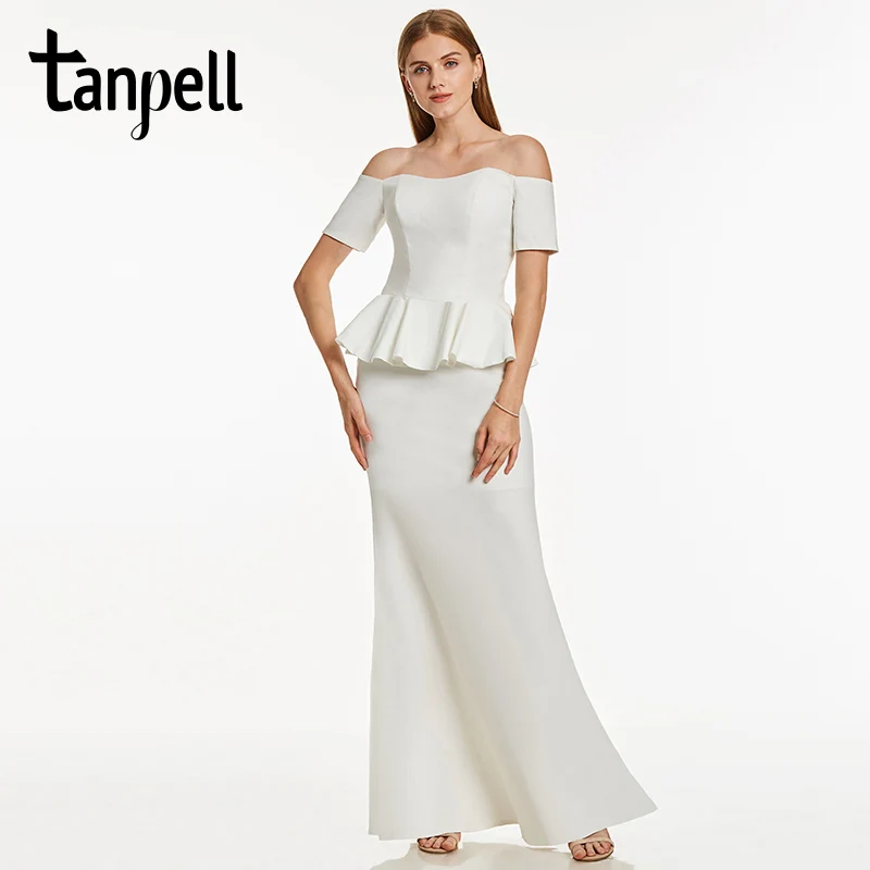 Tanpell вечернее платье с открытыми плечами цвета слоновой кости с короткими рукавами длиной до пола облегающее Свадебное Платье Дешевое женское длинное вечернее платье с оборками