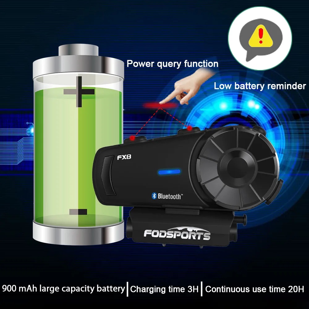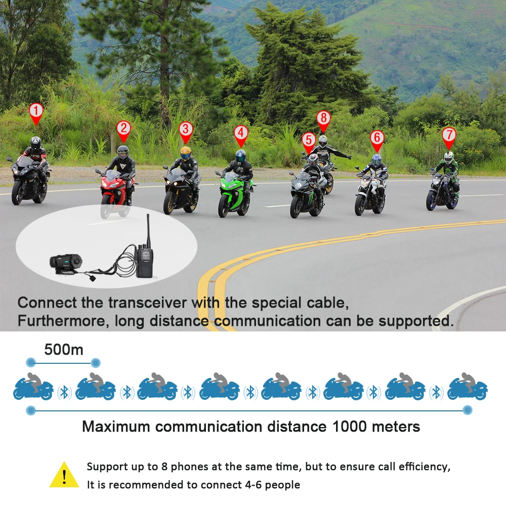 Высокая точность передачи bluetooth музыки и голосовых вызовов Поддержка 8 велосипедистов одновременно. Fm-радио, Интерком 1000 м Аккумулятор 900 мА · ч, который может работать 8-10 часов при полной зарядке Микрофон с защитой от шума, функция цифрового шумоподавления CVC Периферийный аудиоинтерфейс Голосовая команда, голосовая подсказка Наслаждайтесь музыкой через bluetooth и включите мобильный телефон/MP3/GPS. (A2DP стерео музыка) Получите мобильный телефонный звонок автоматически, автоответчик, последний номер повторного набора и голосового набора Два вида микрофона подходят для всех шлемов, таких как открытое лицо и шлем с полным лицом Пара с 3 устройствами Bluetooth