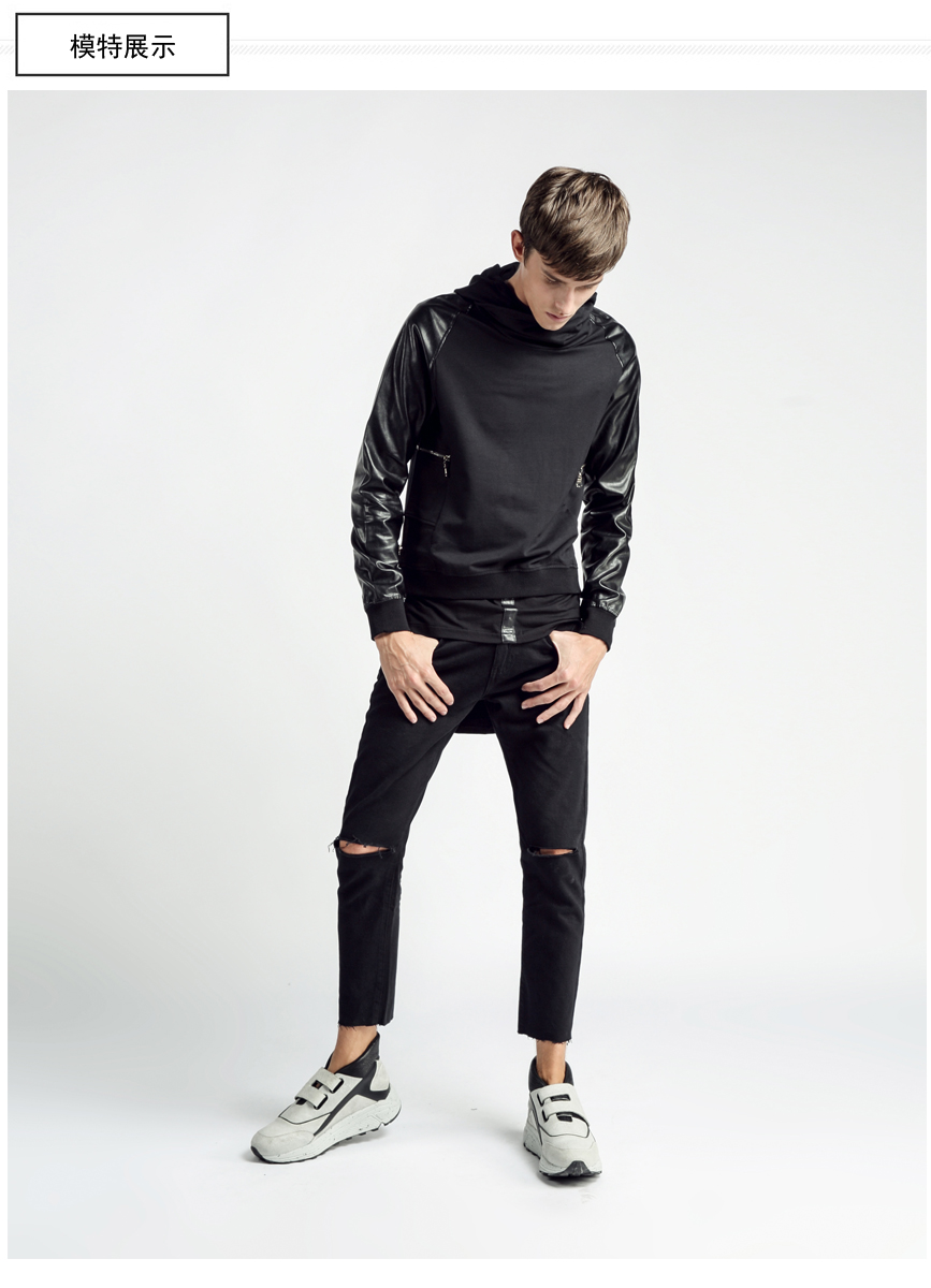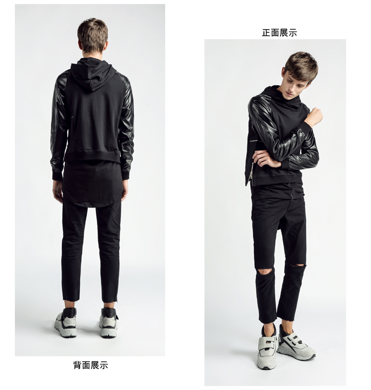 Отзывы о S-45XL! Худи мужское из натуральной кожи на молнии с капюшоном 2017 костюмы для певцов