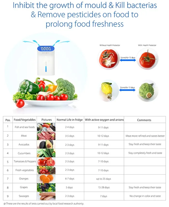 This unit also can produce ozone, which plays a important role in removing the odor in the air, when put it in the fridge to make food stay in fresh much longer.